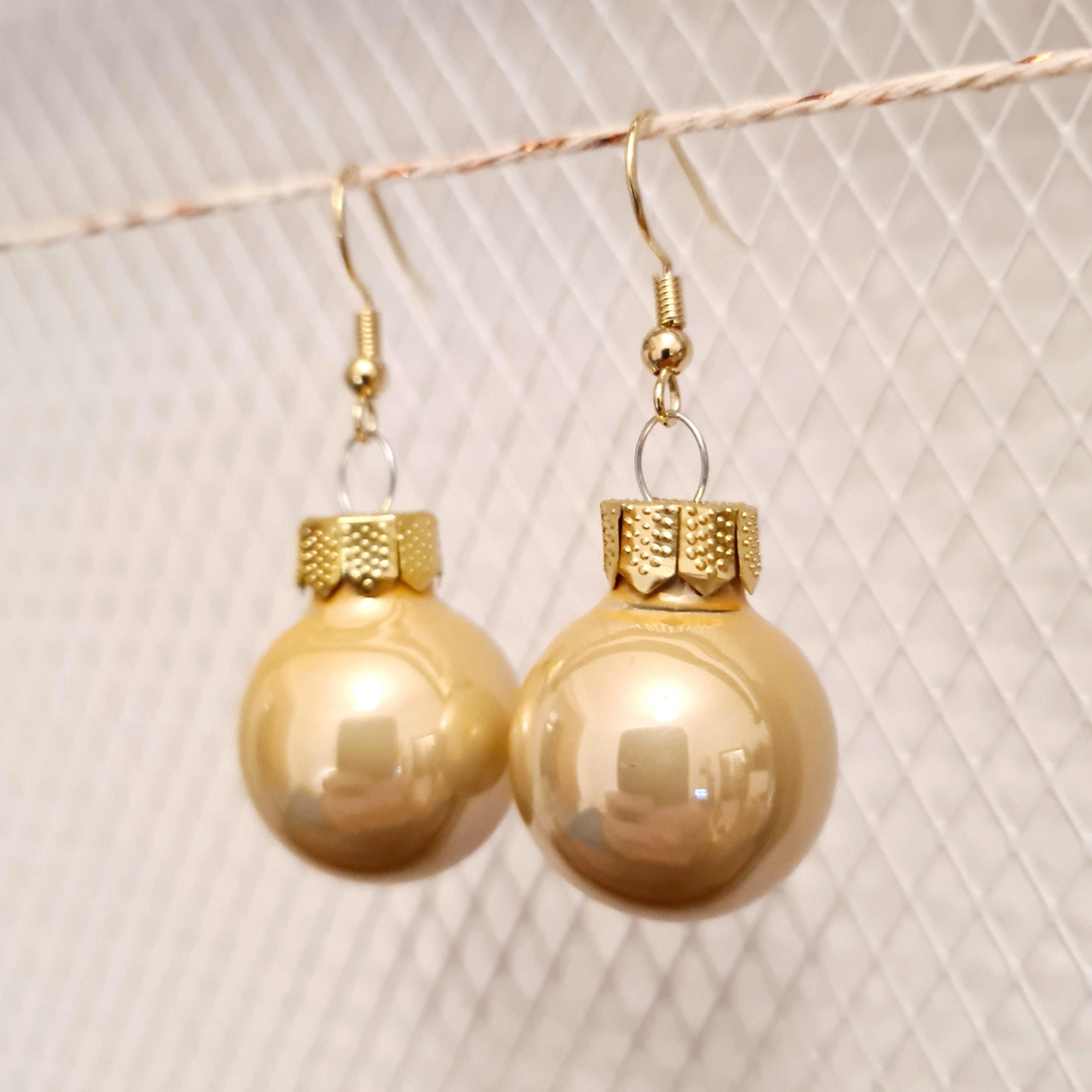 These earrings with champagne-colored balls are a real eye-catcher, perfectly matching Christmas decorations.