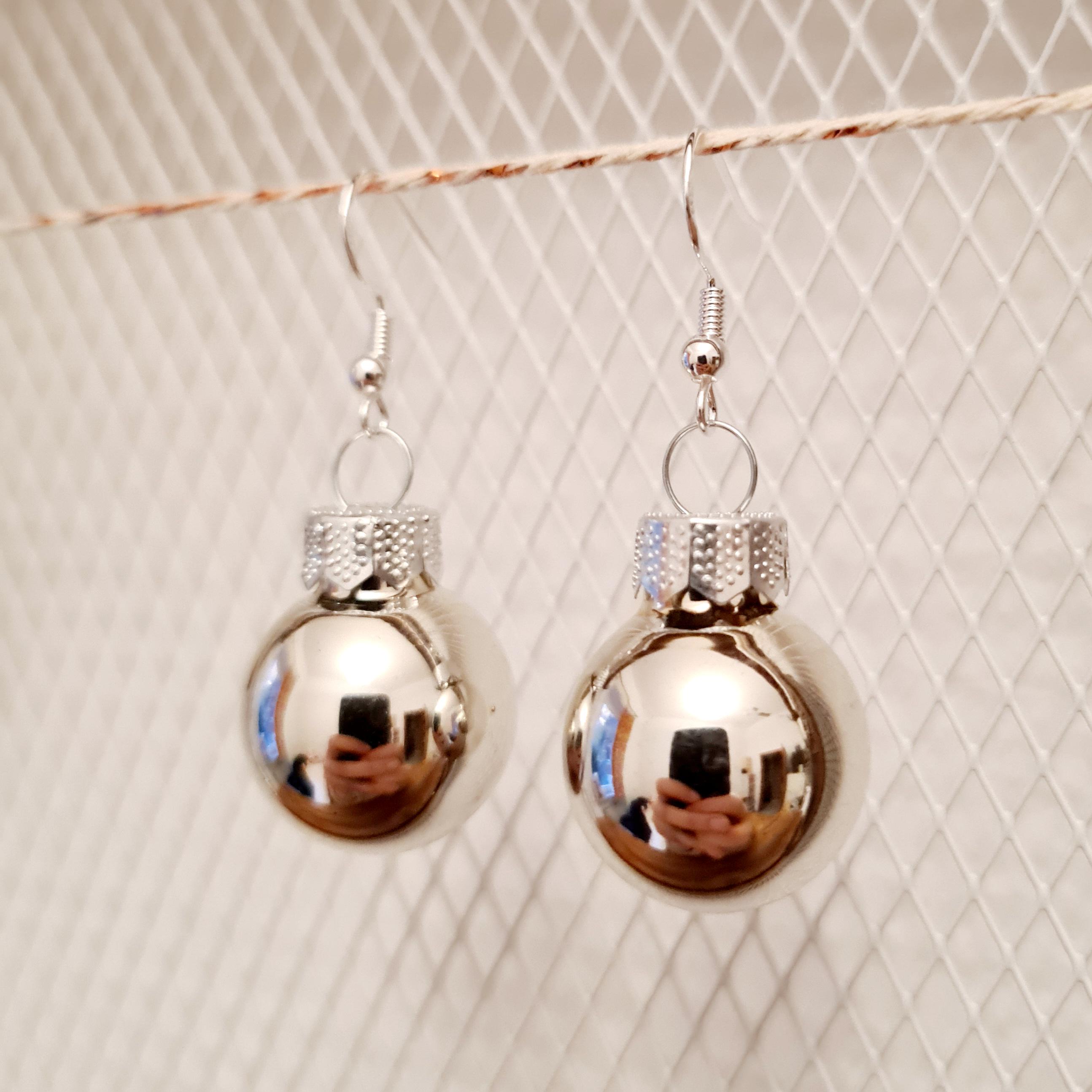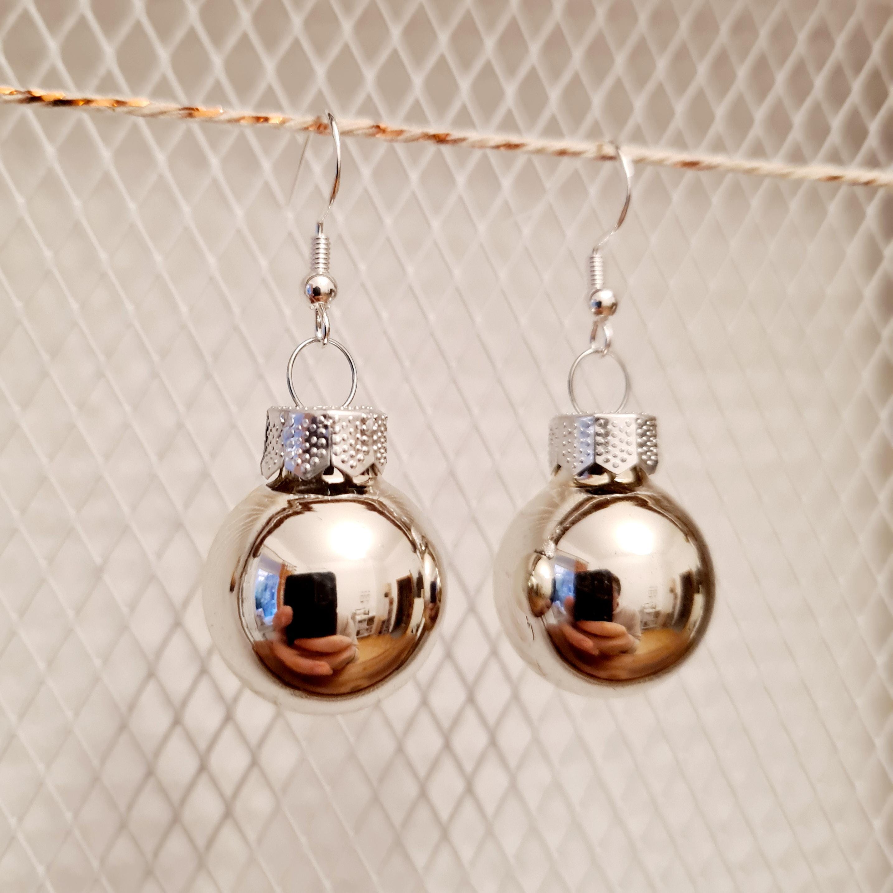 These earrings with silver-grey balls are a real eye-catcher, matching the Christmas decorations.