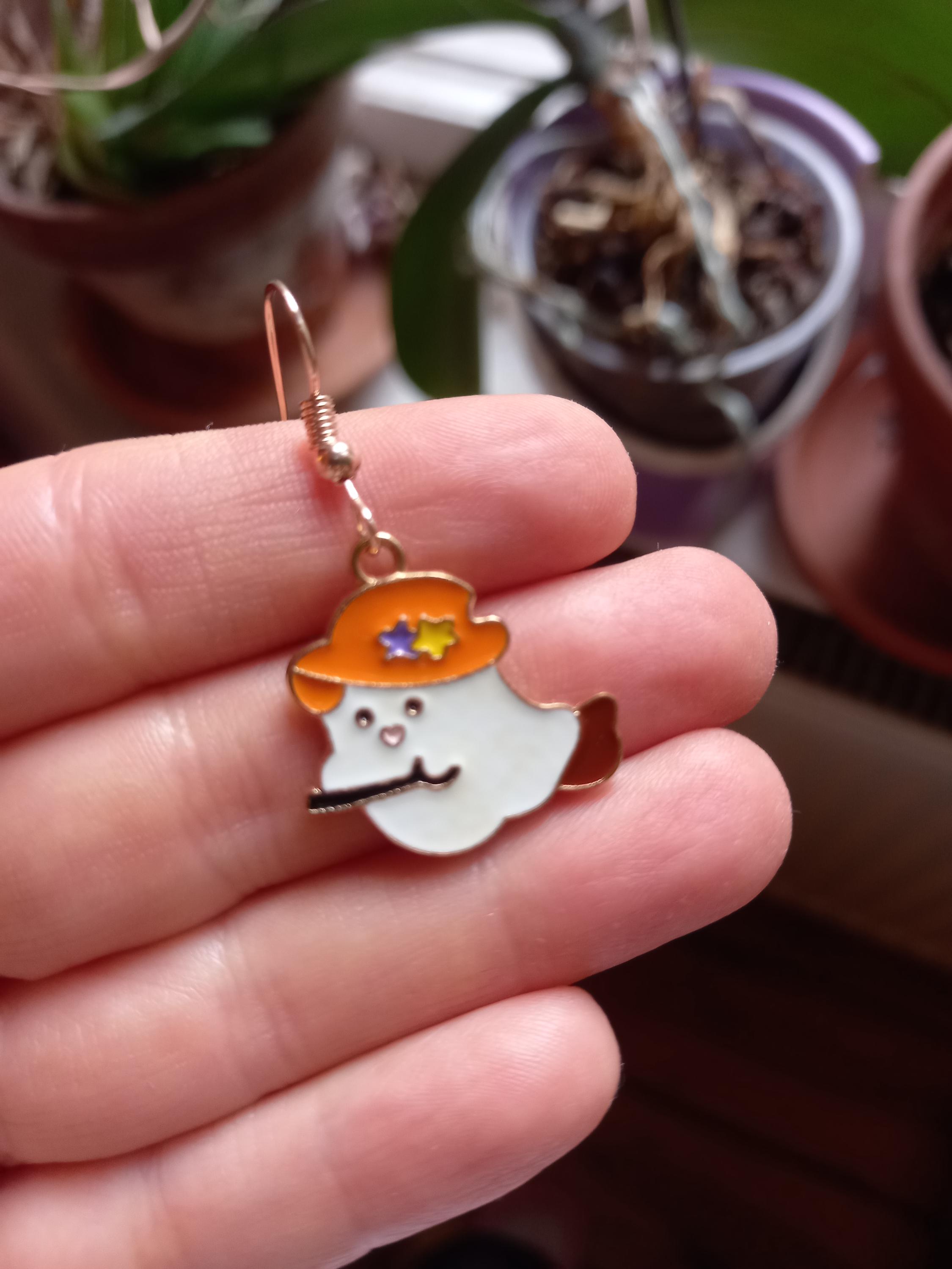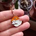These earrings with cute little ghosts on witch's brooms in white, orange, black and gold are a chic accessory for your Halloween costume!