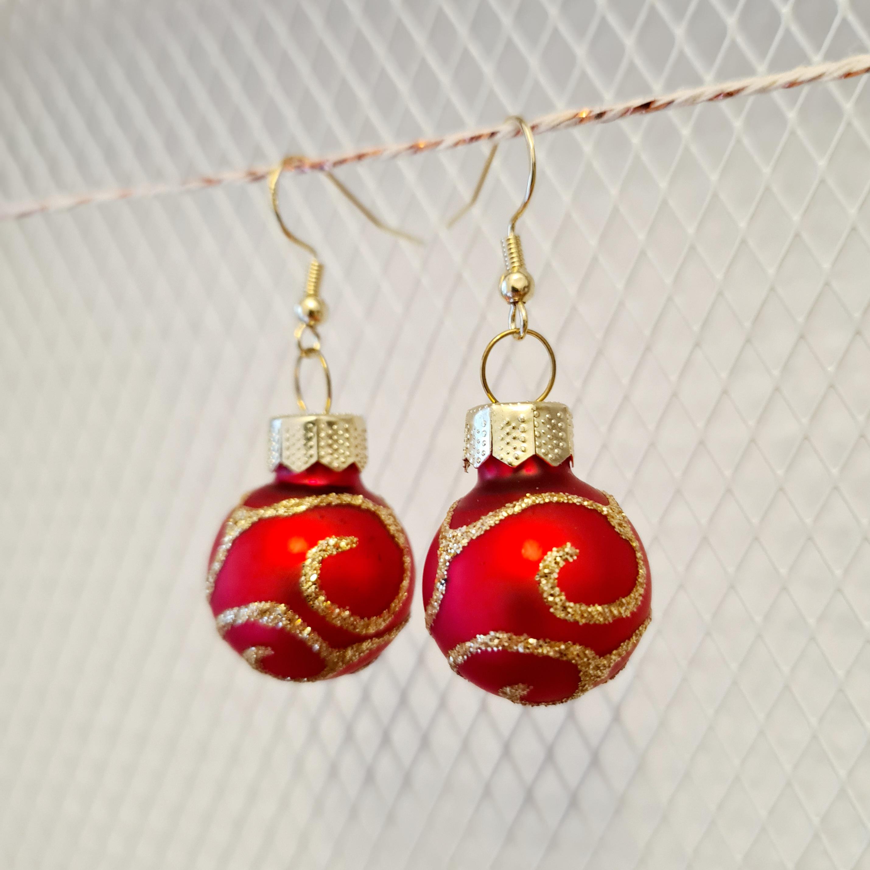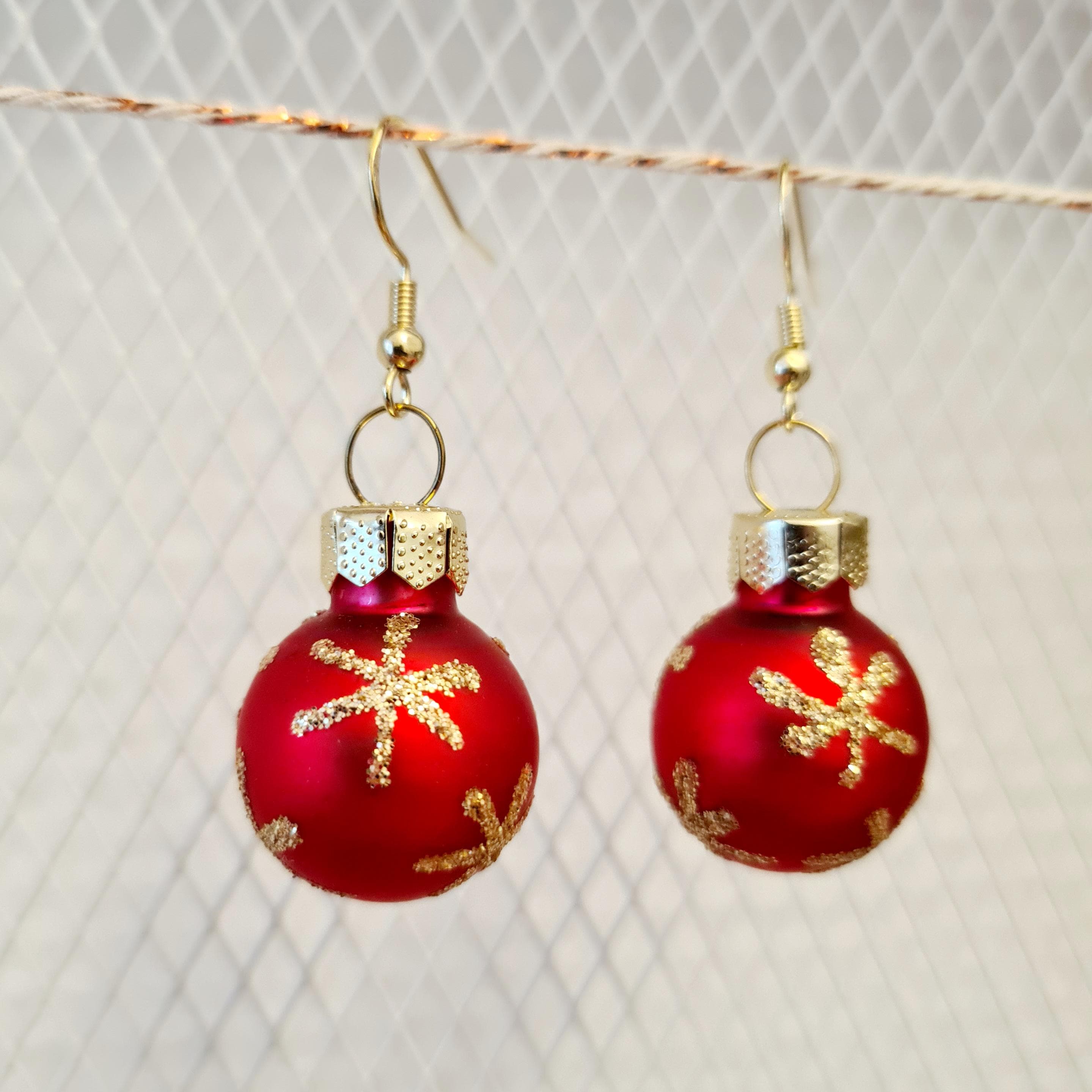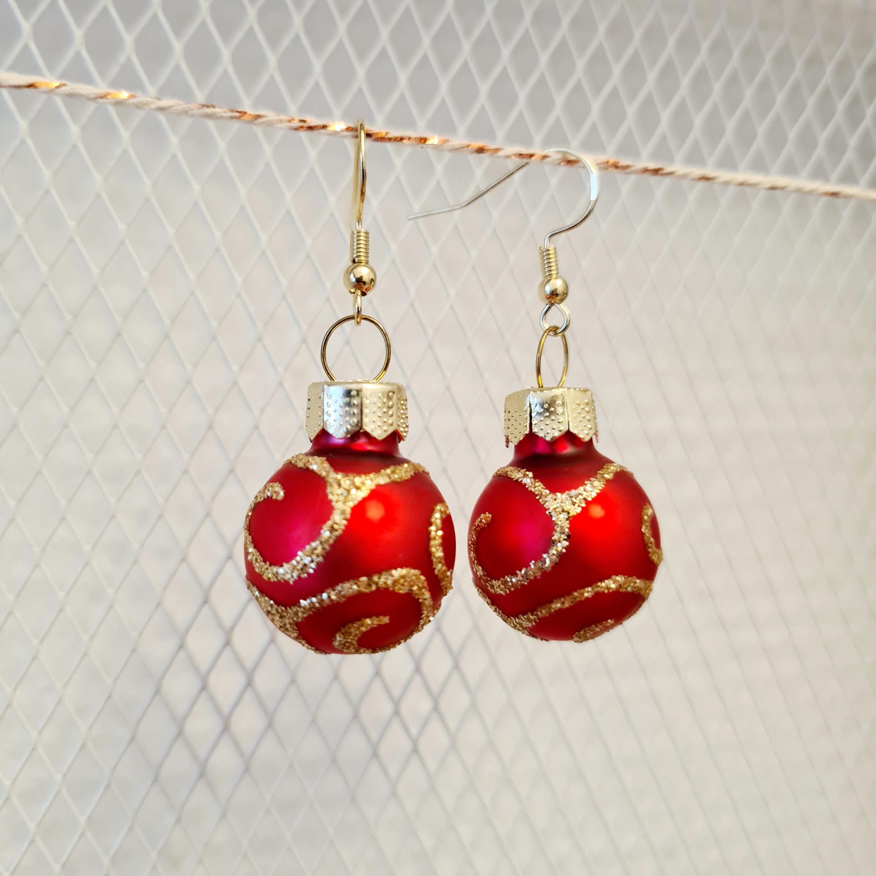 These earrings with red balls are a real eye-catcher, perfectly matching Christmas decorations.