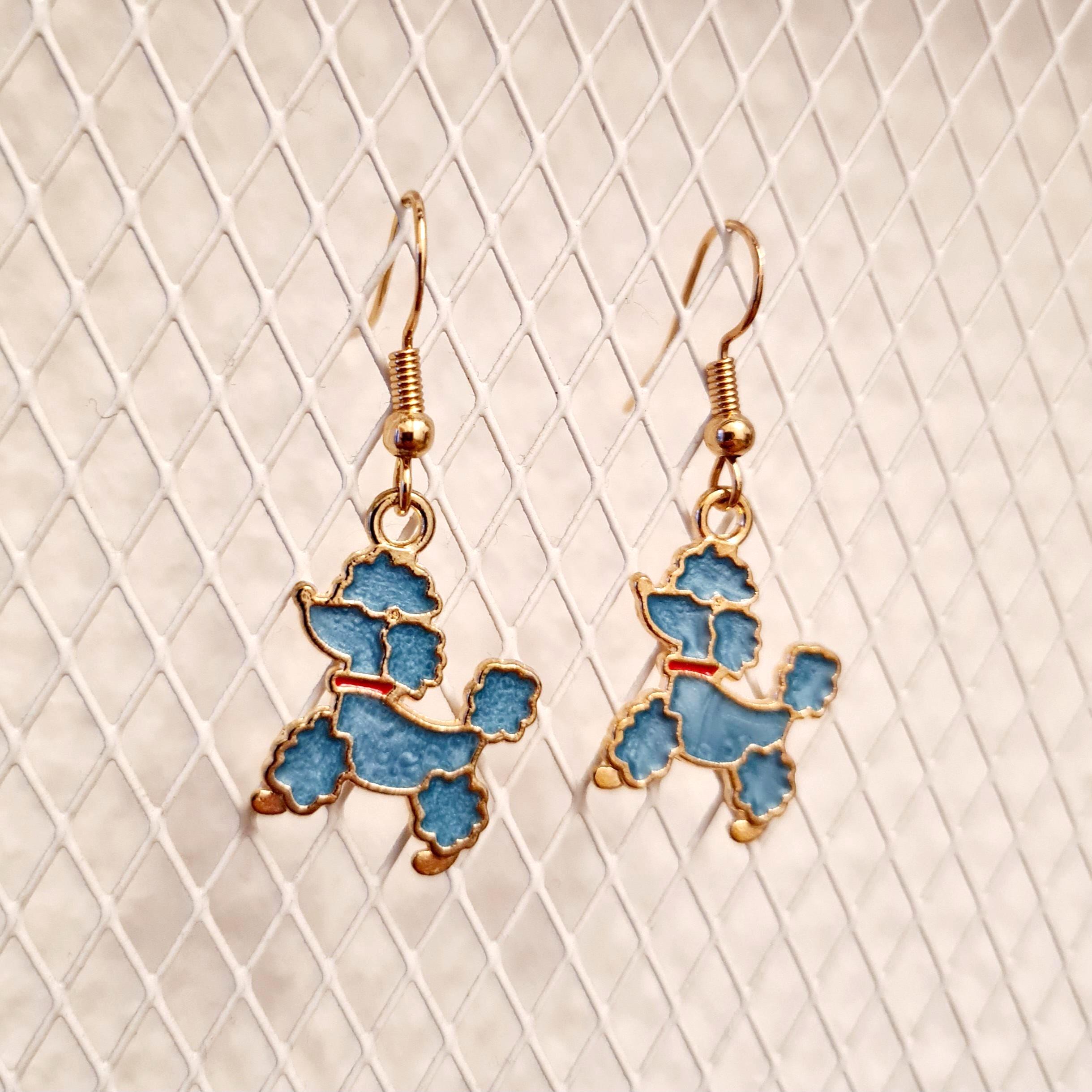Enamel and copper poodle earrings in light blue or pink. For dog lovers!