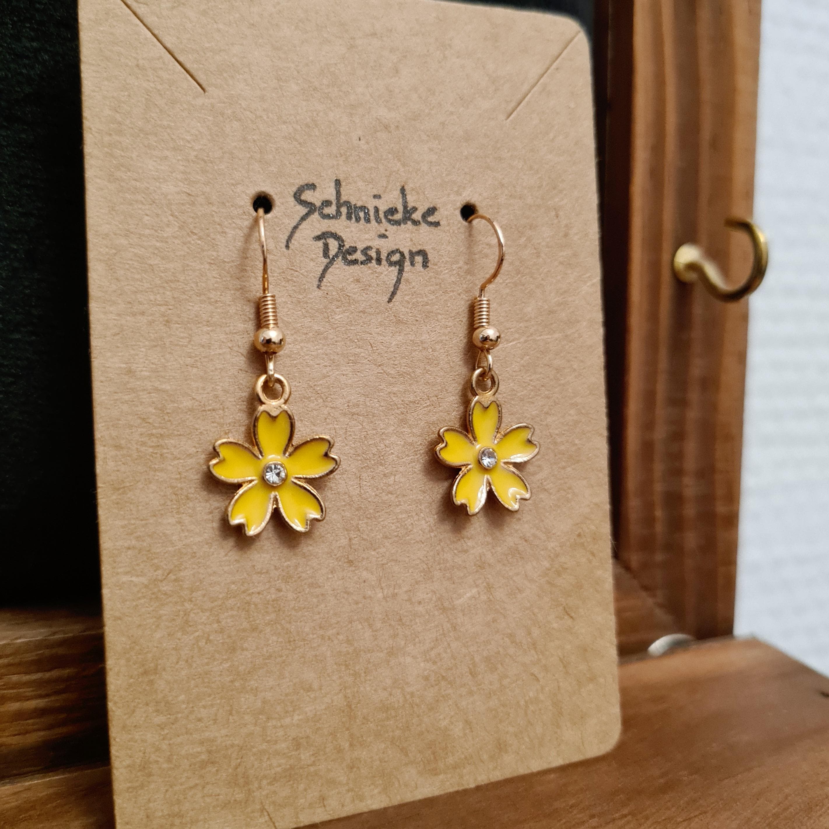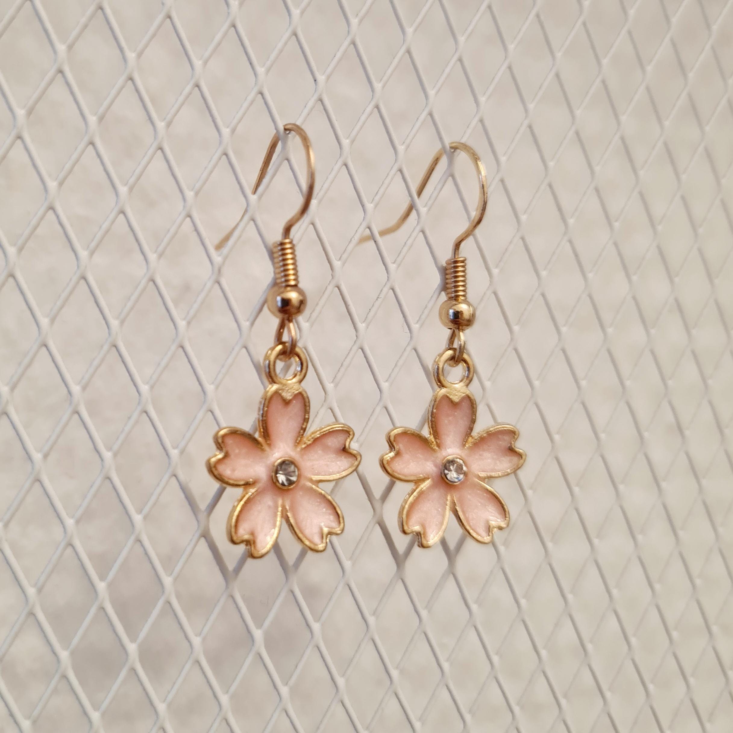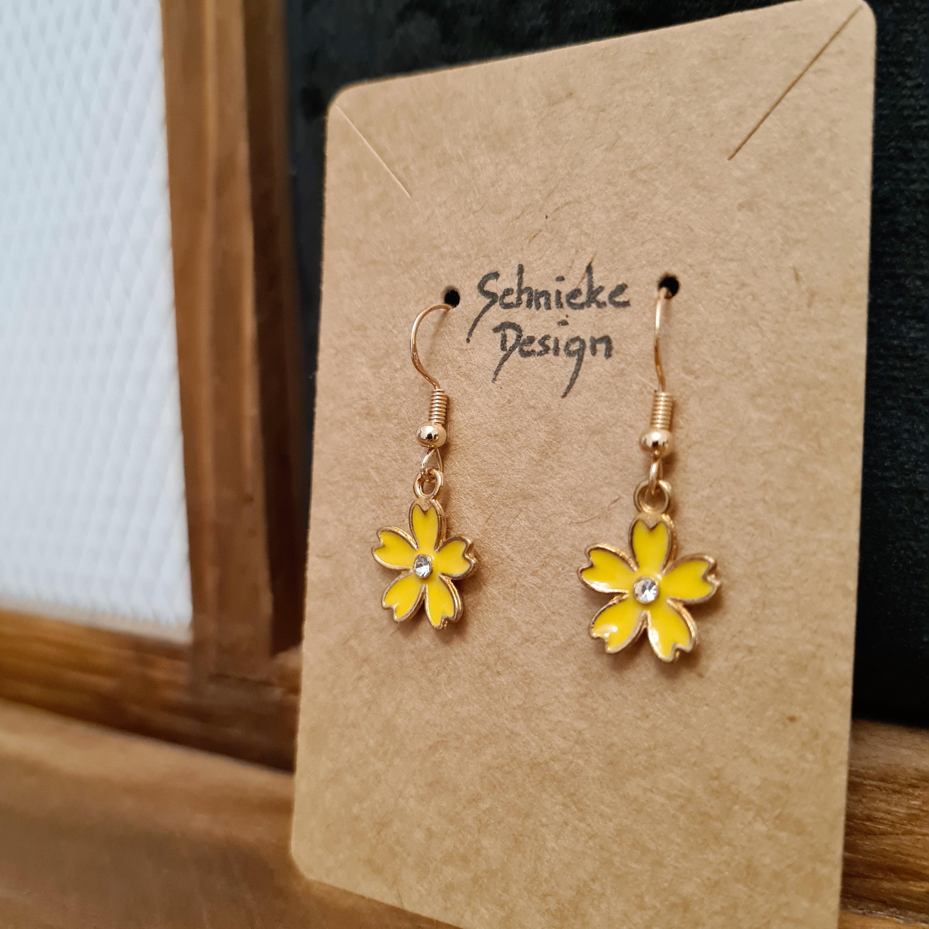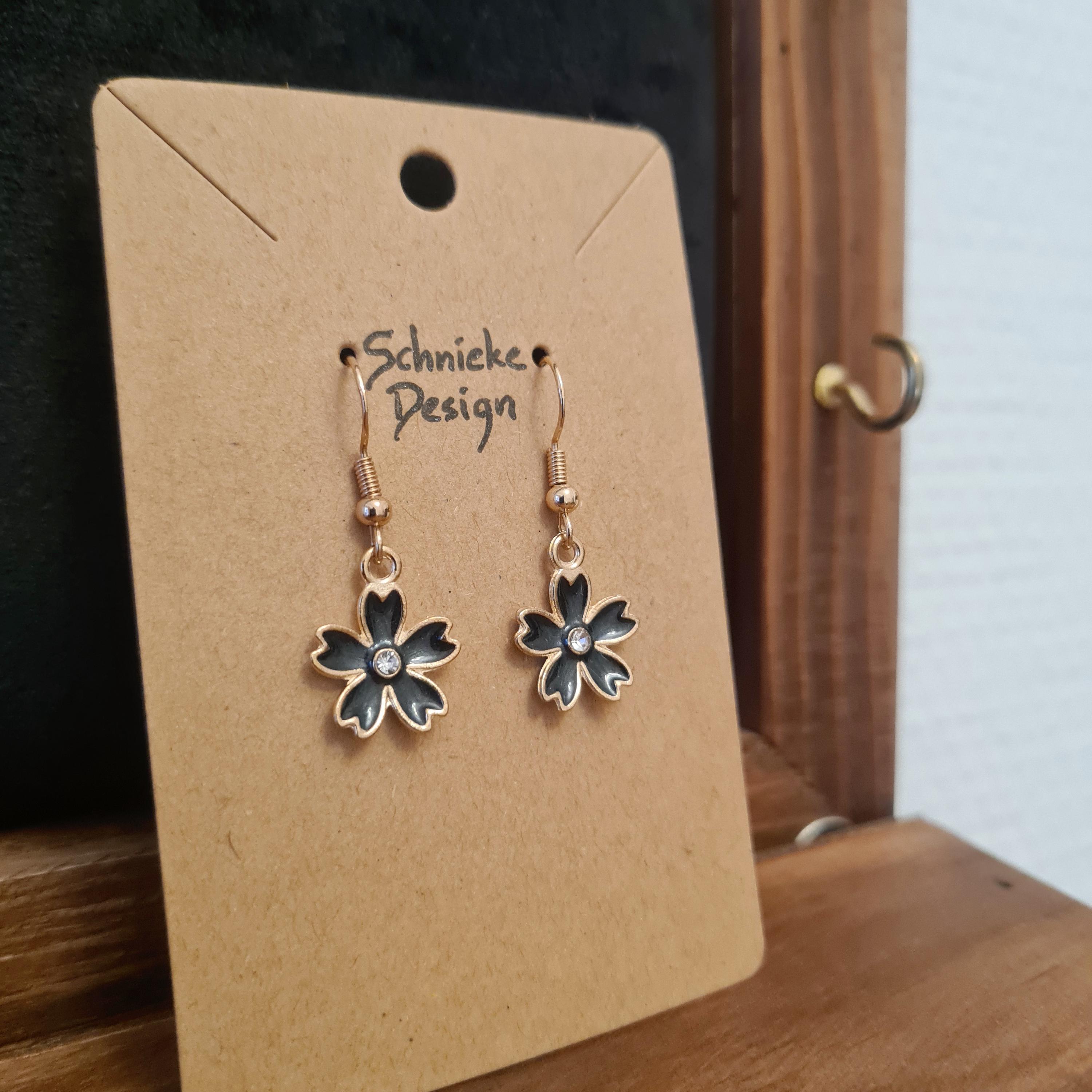 Enamel and copper flower earrings with silver glitter stones in blue, yellow, pink or black.