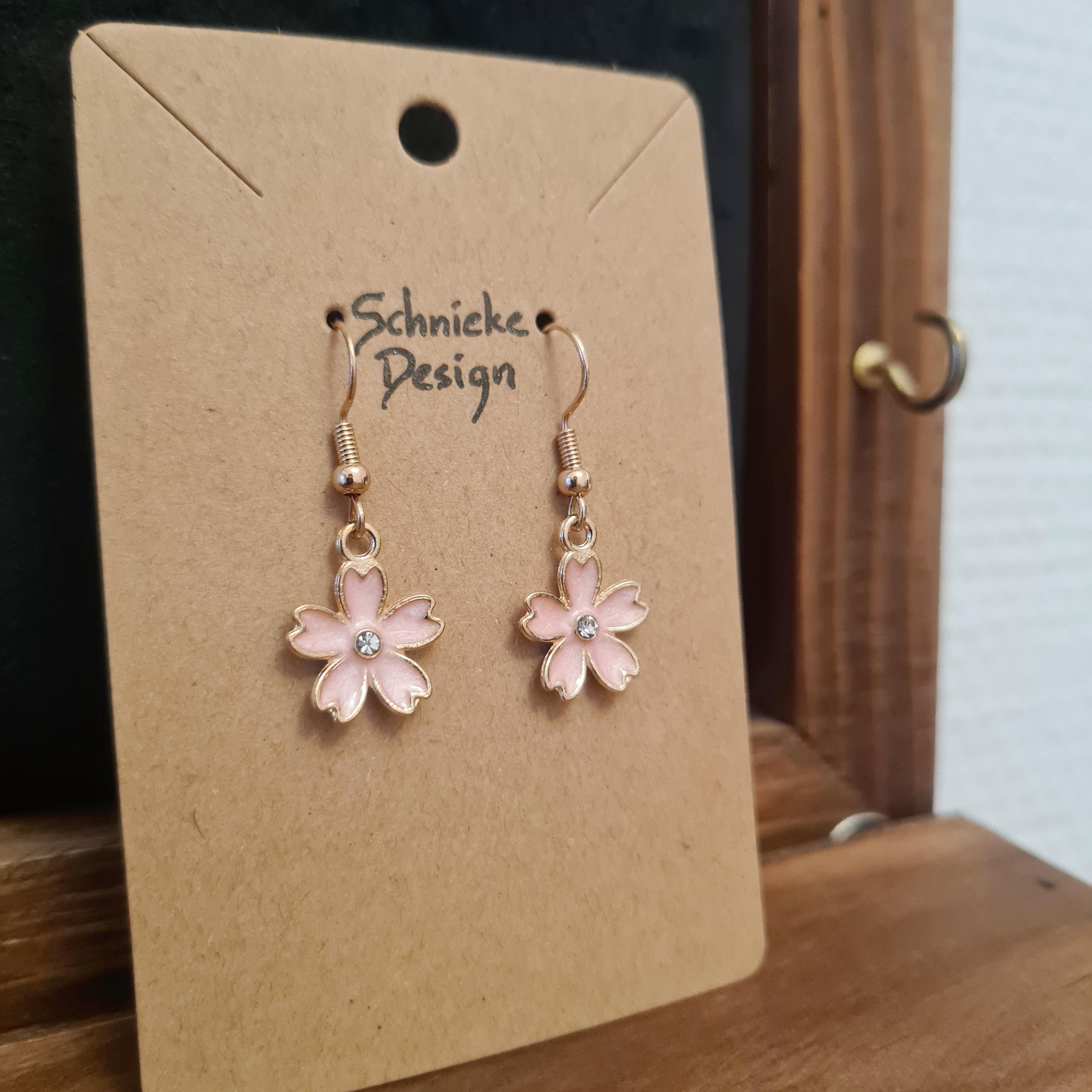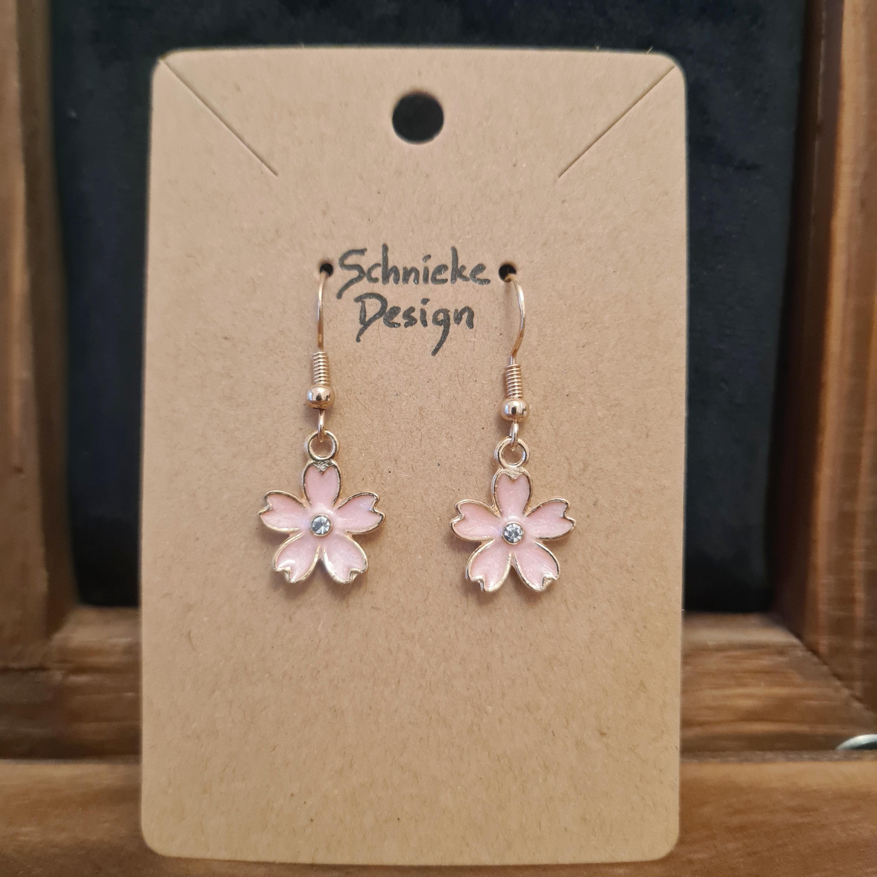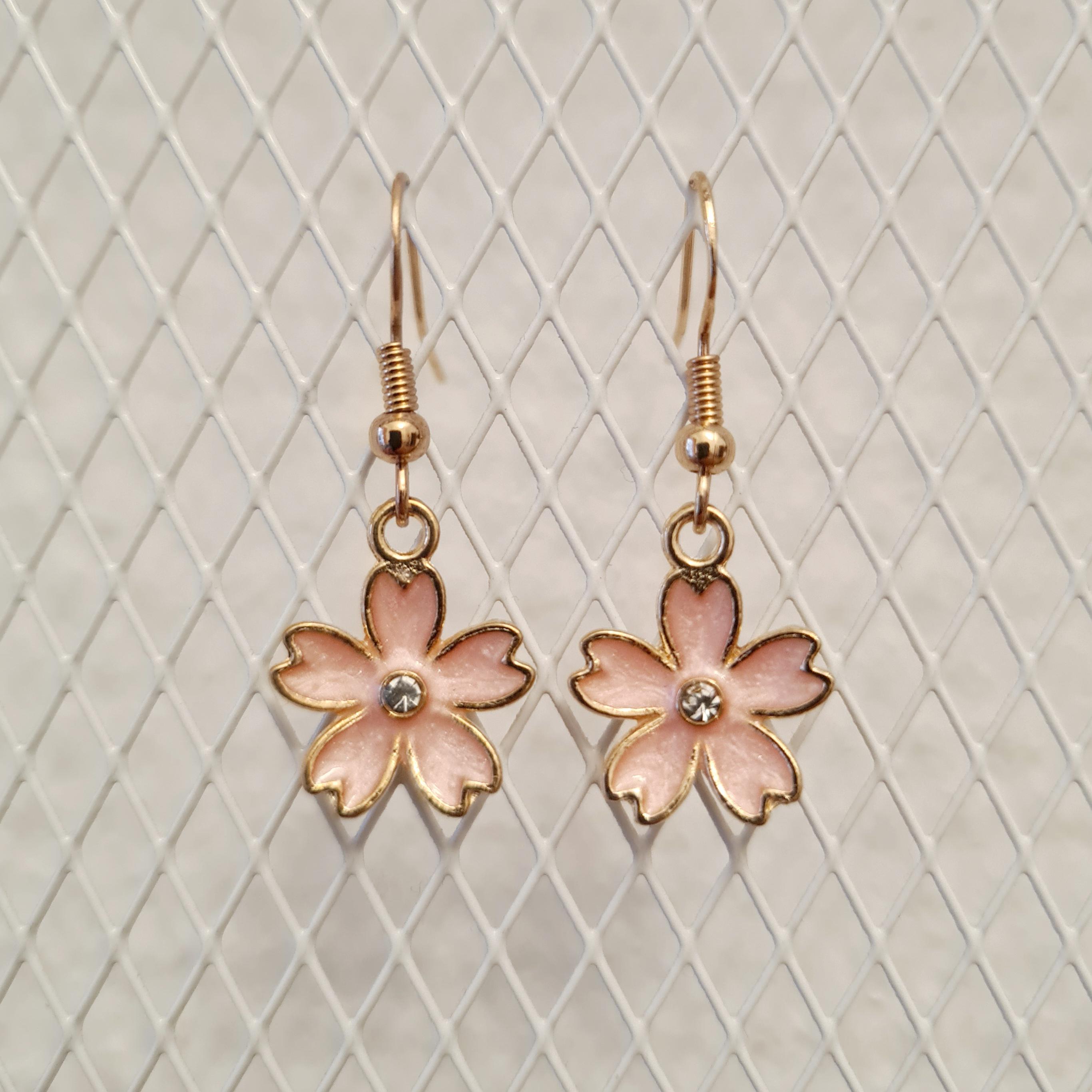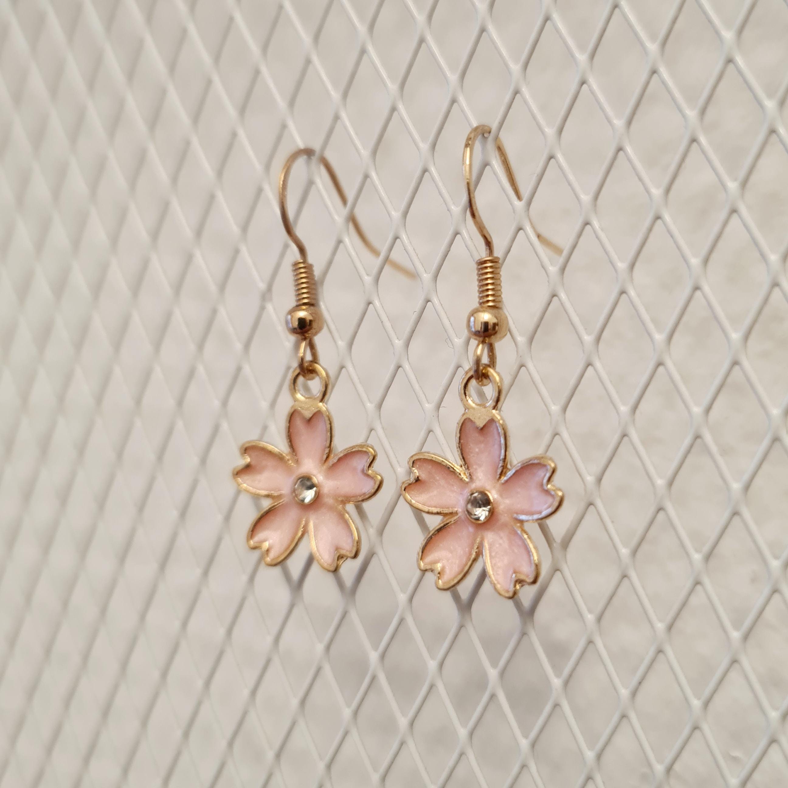 Enamel and copper flower earrings with silver glitter stones in blue, yellow, pink or black.