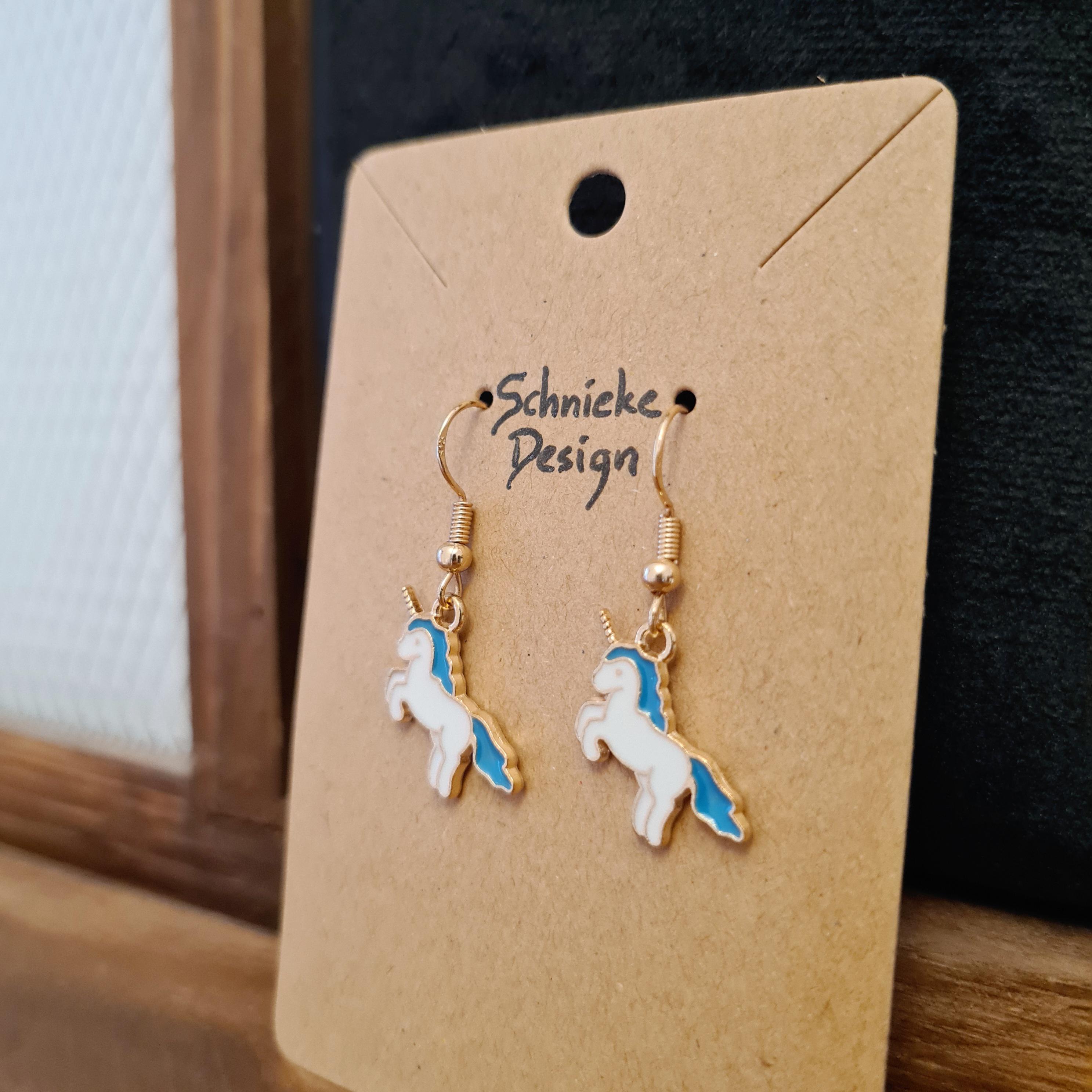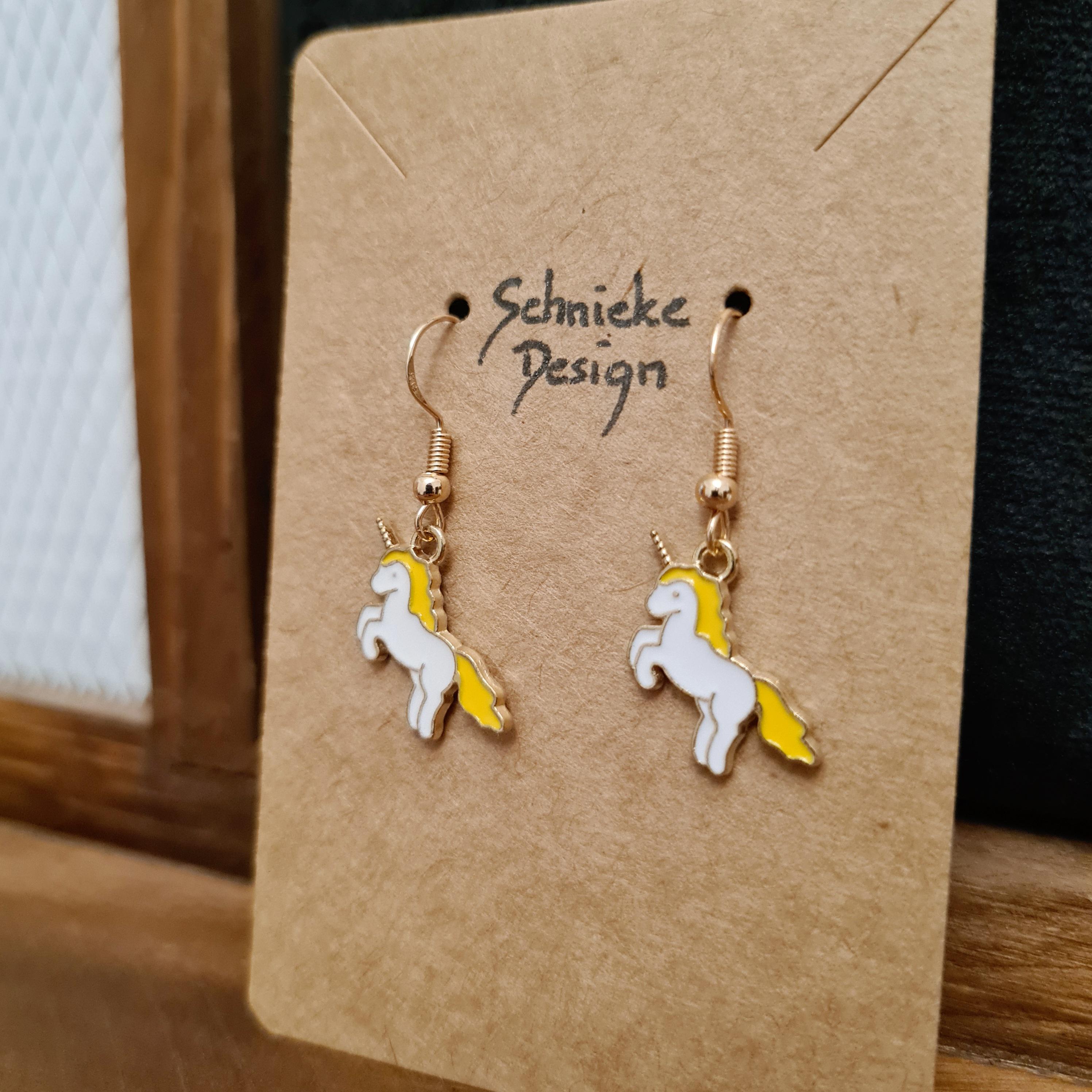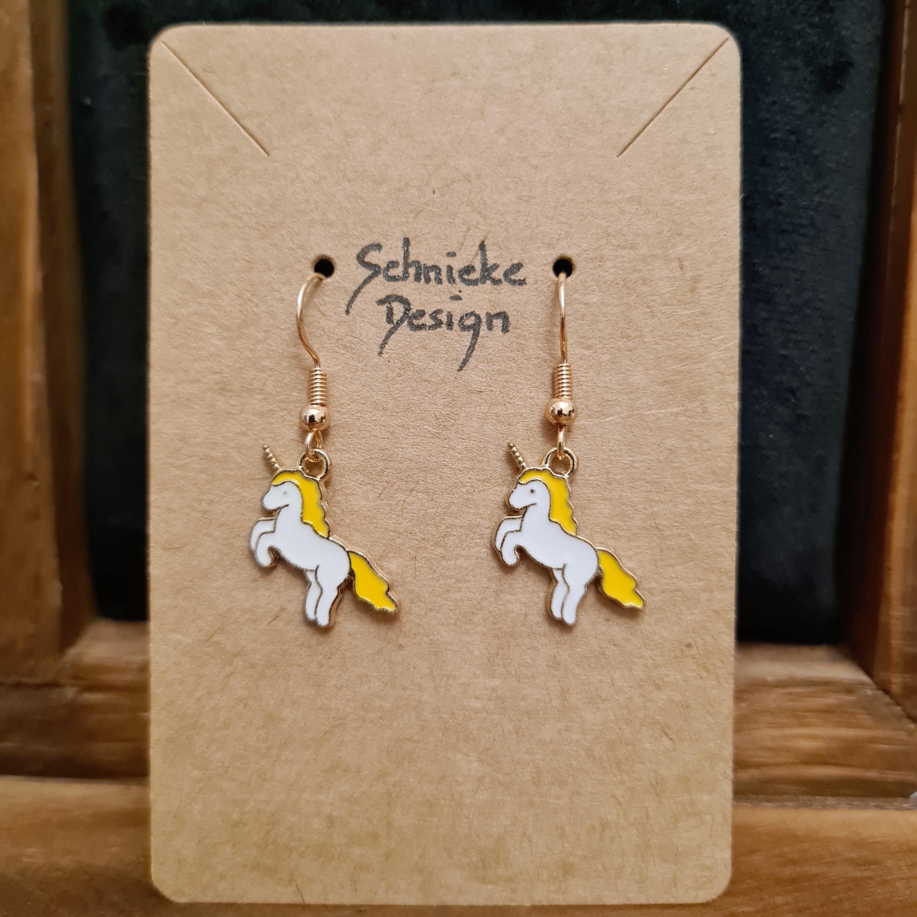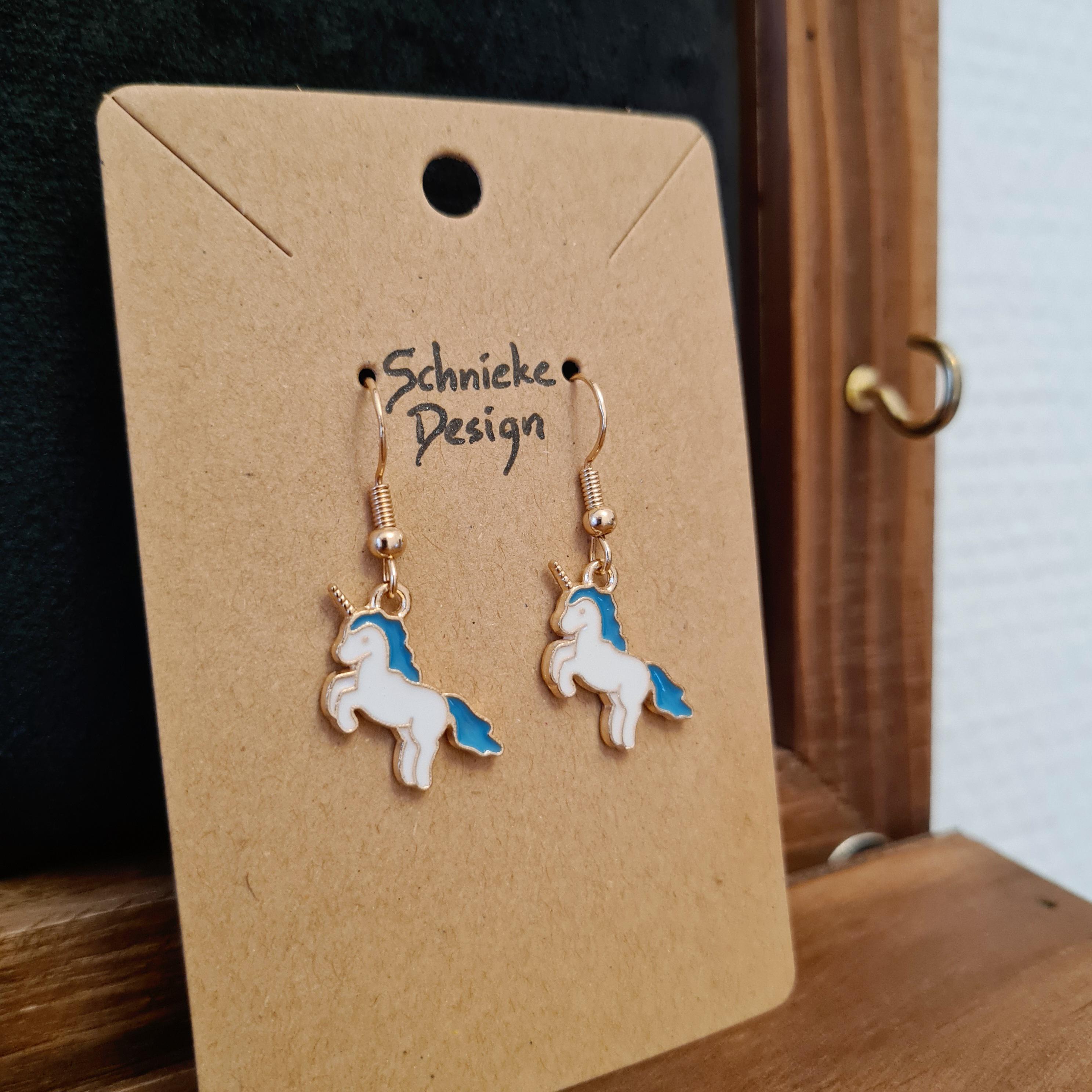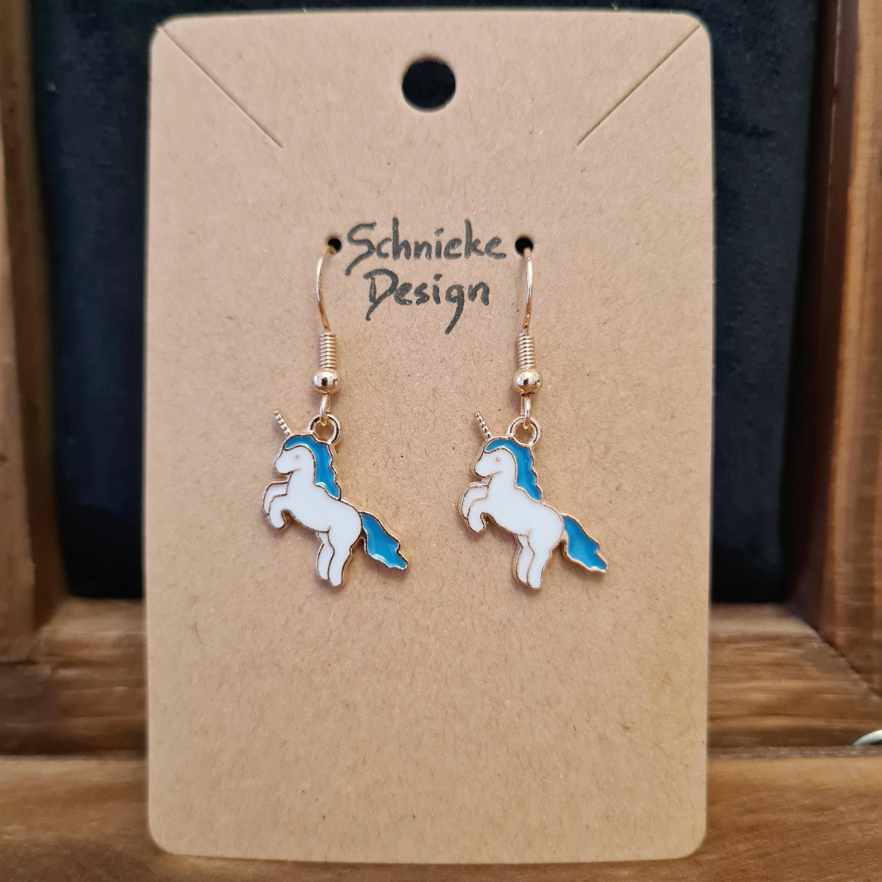 Magical unicorn earrings made of enamel and copper.