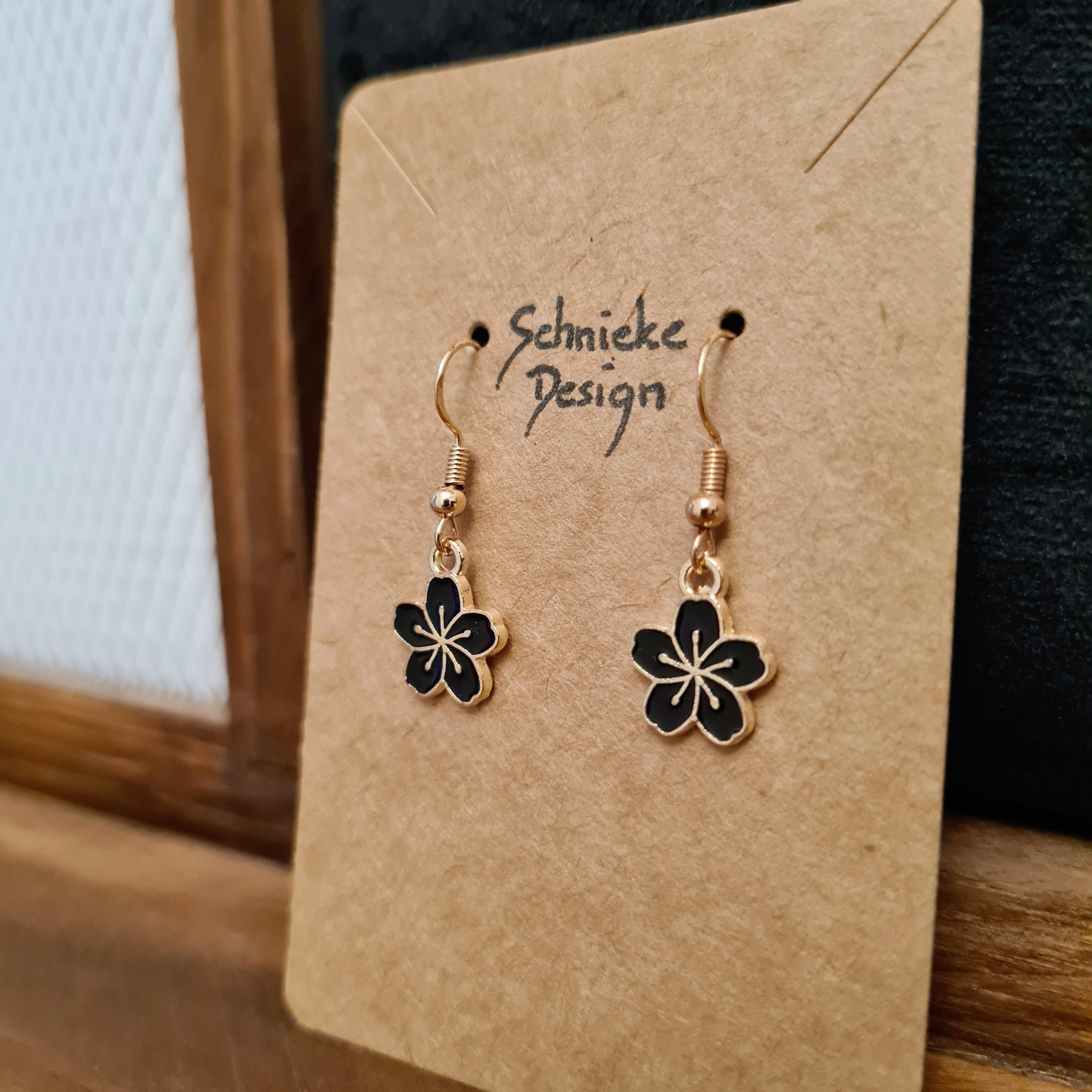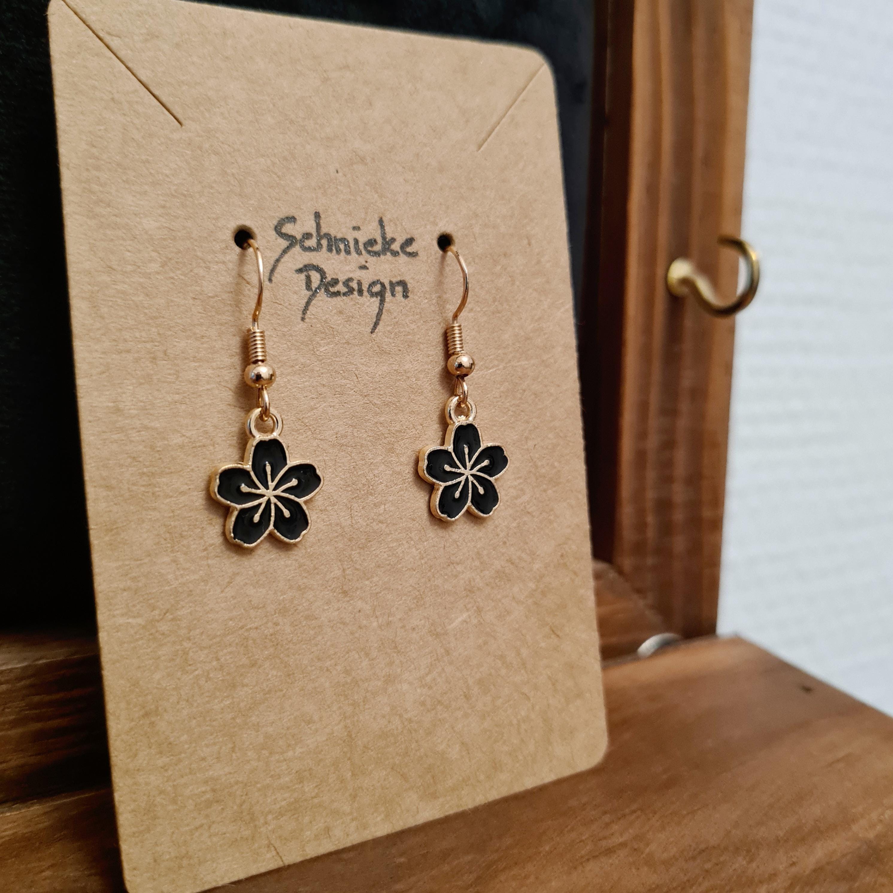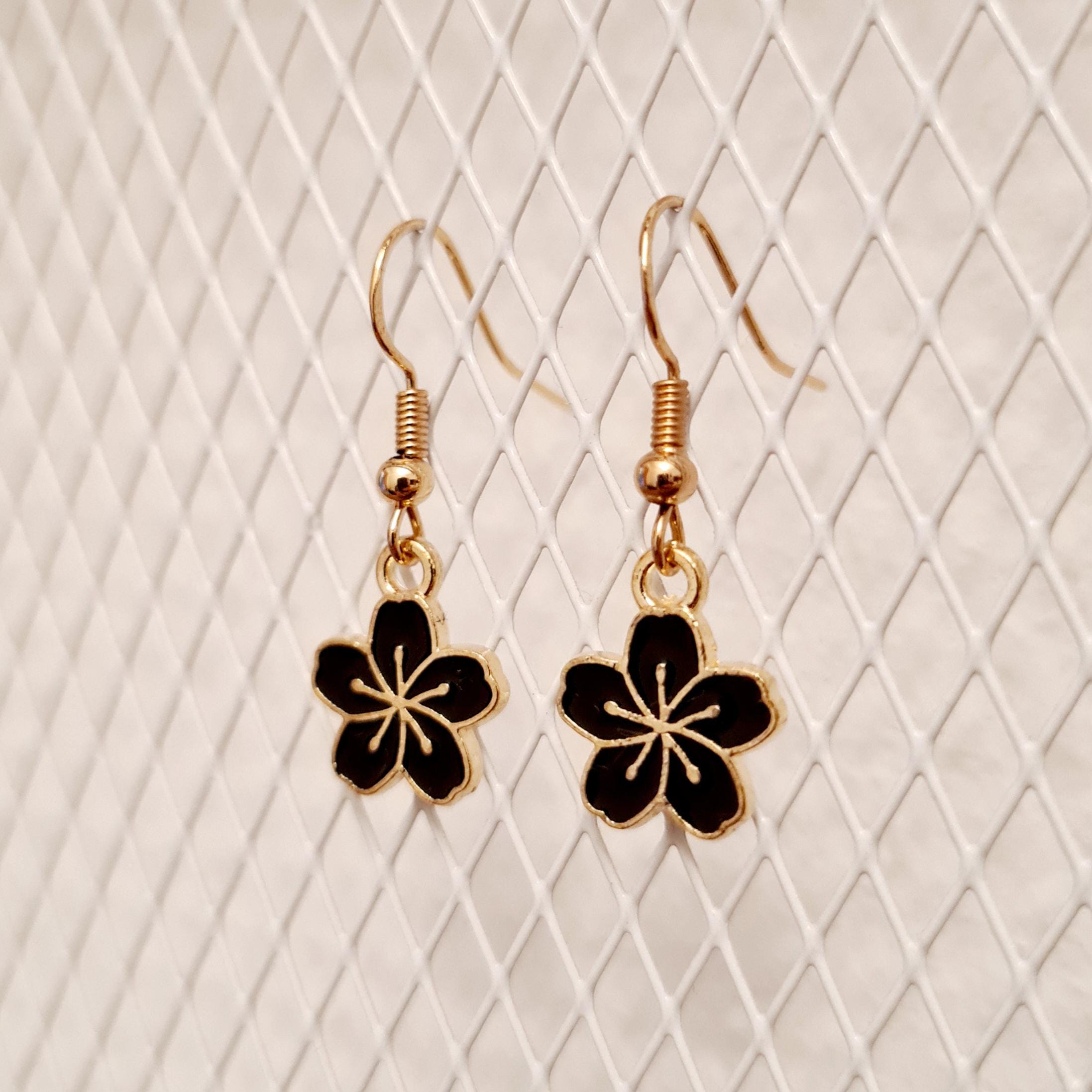 Enamel and copper flower earrings. Available in green, black, pink, or purple.