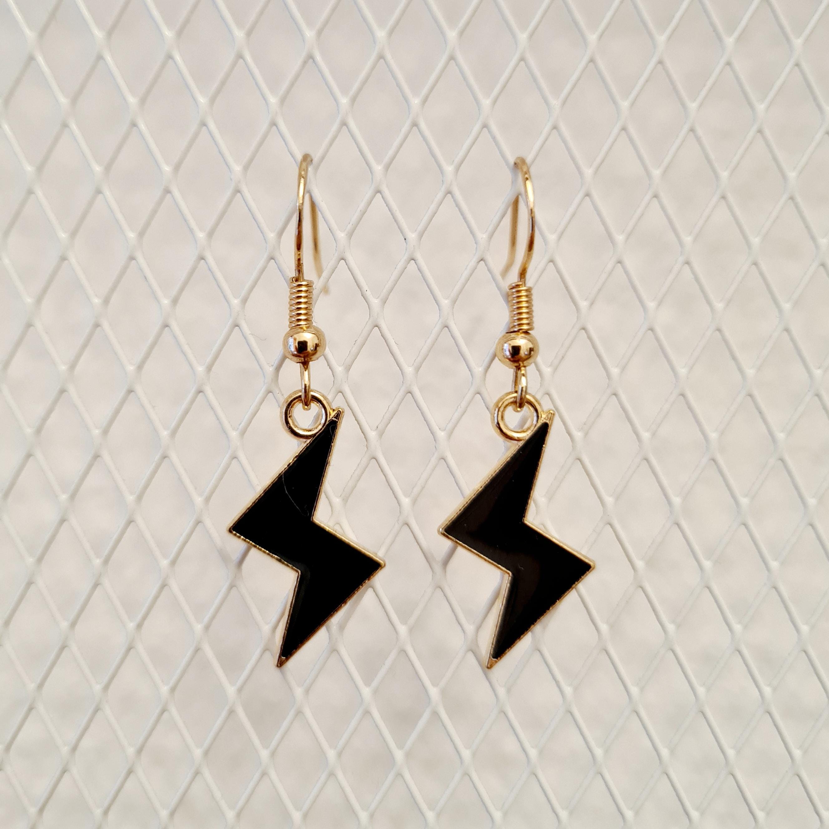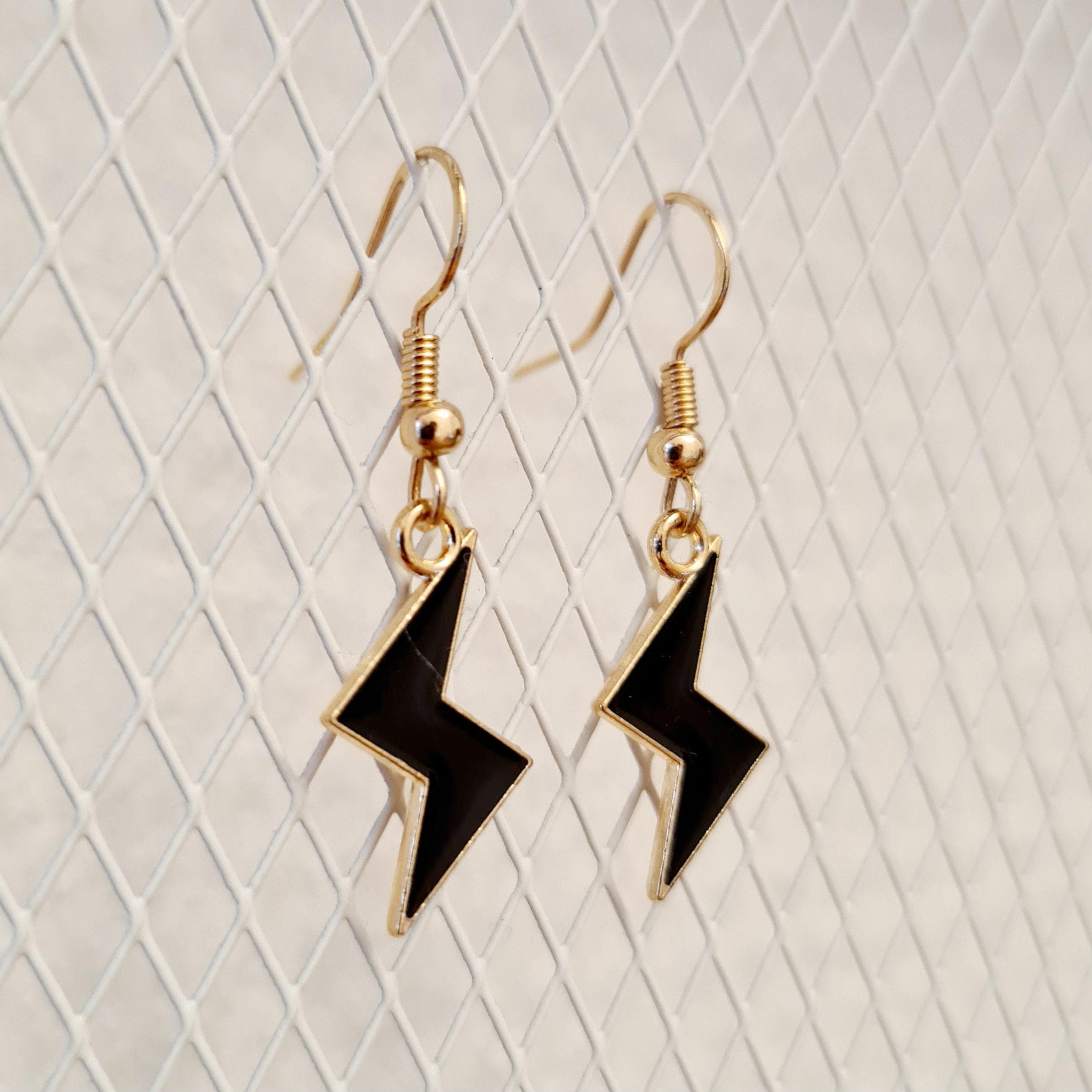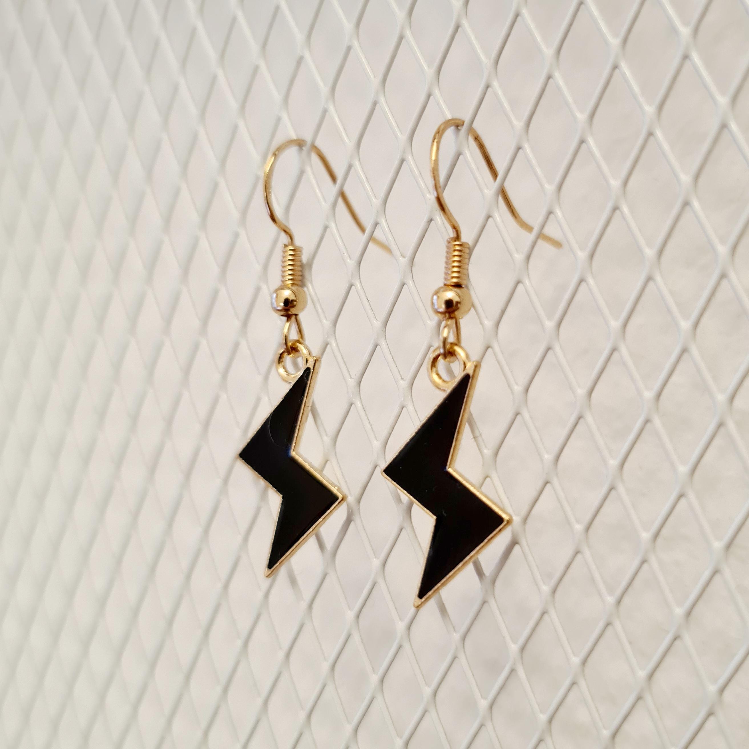 Lightning bolt earrings made of enamel and copper in yellow, black or purple.