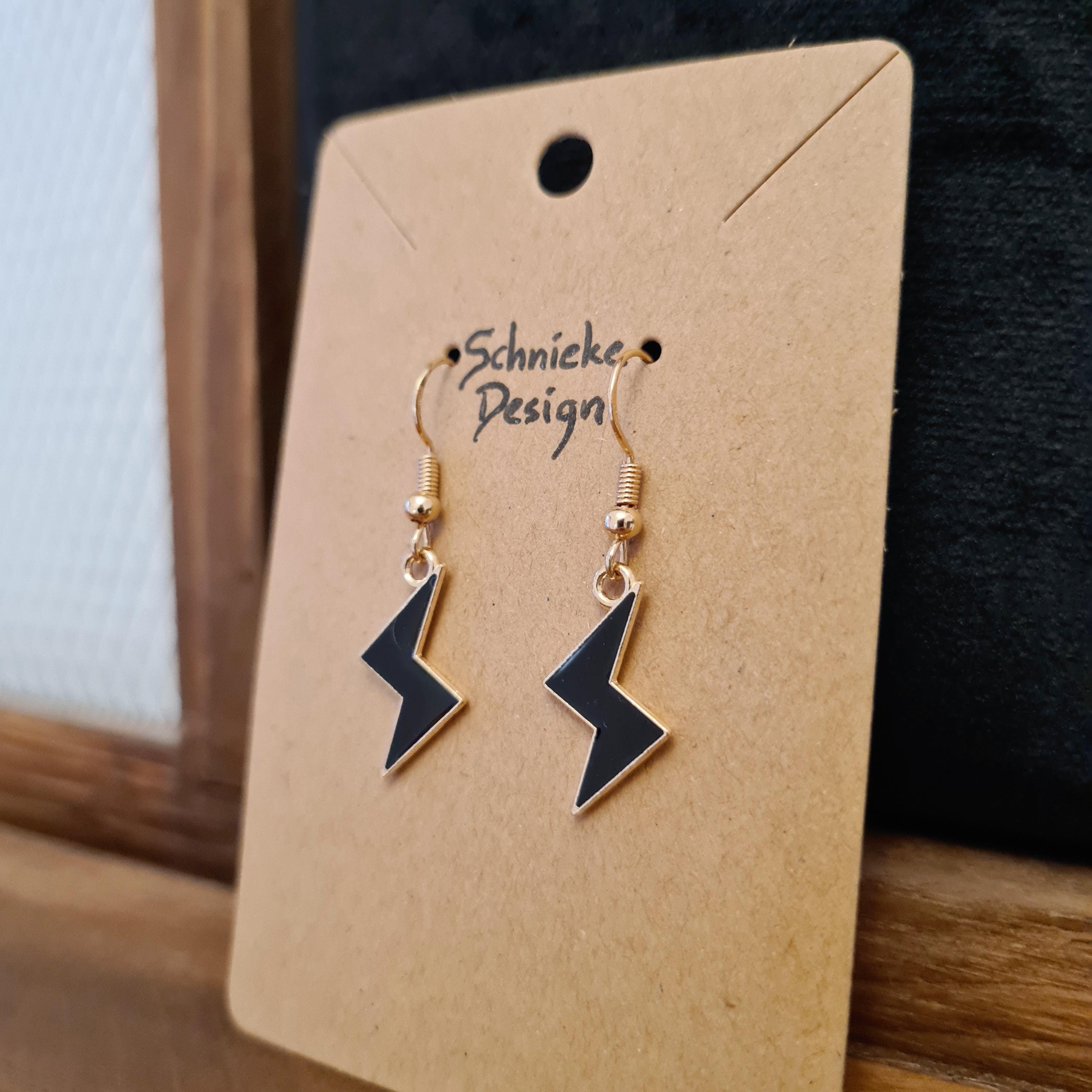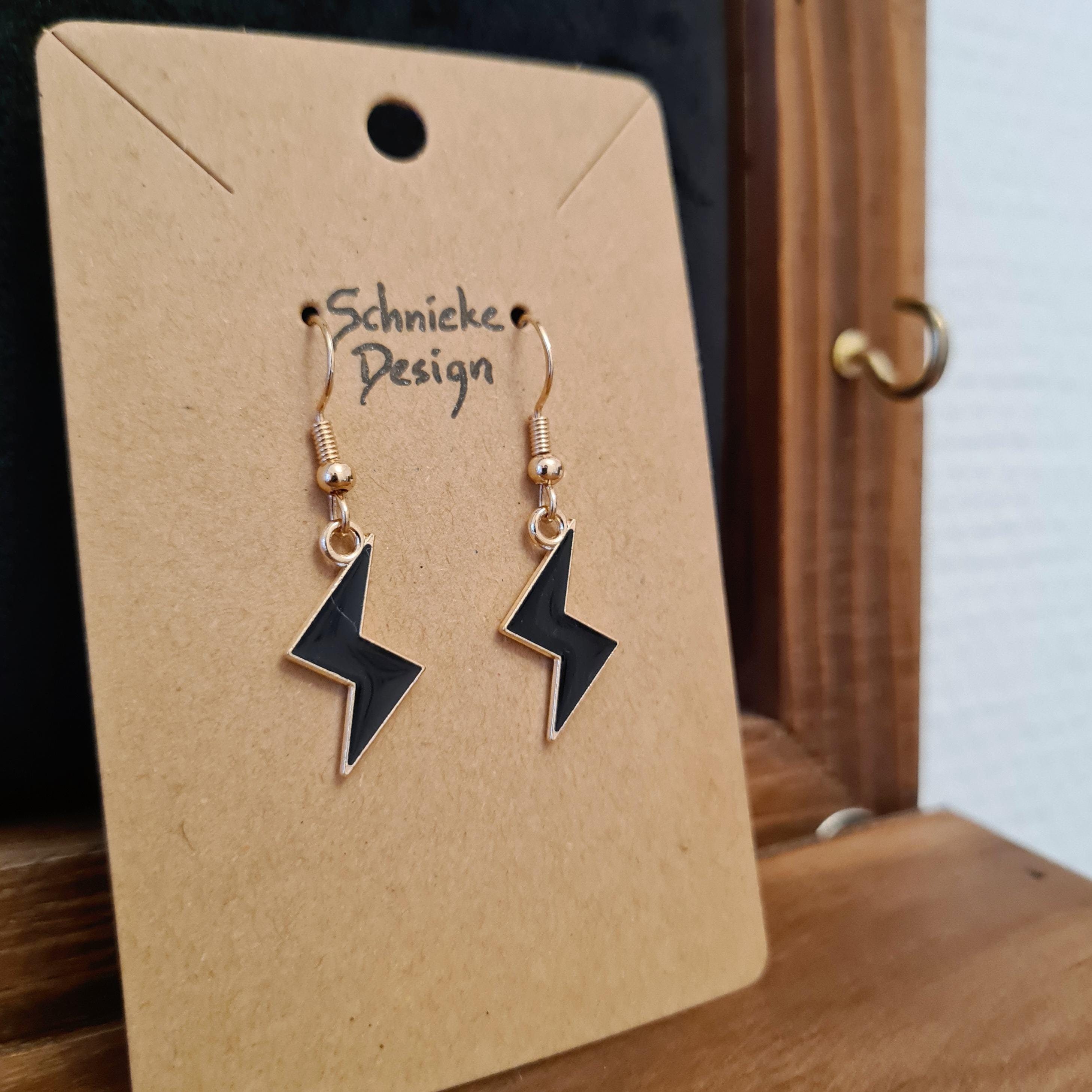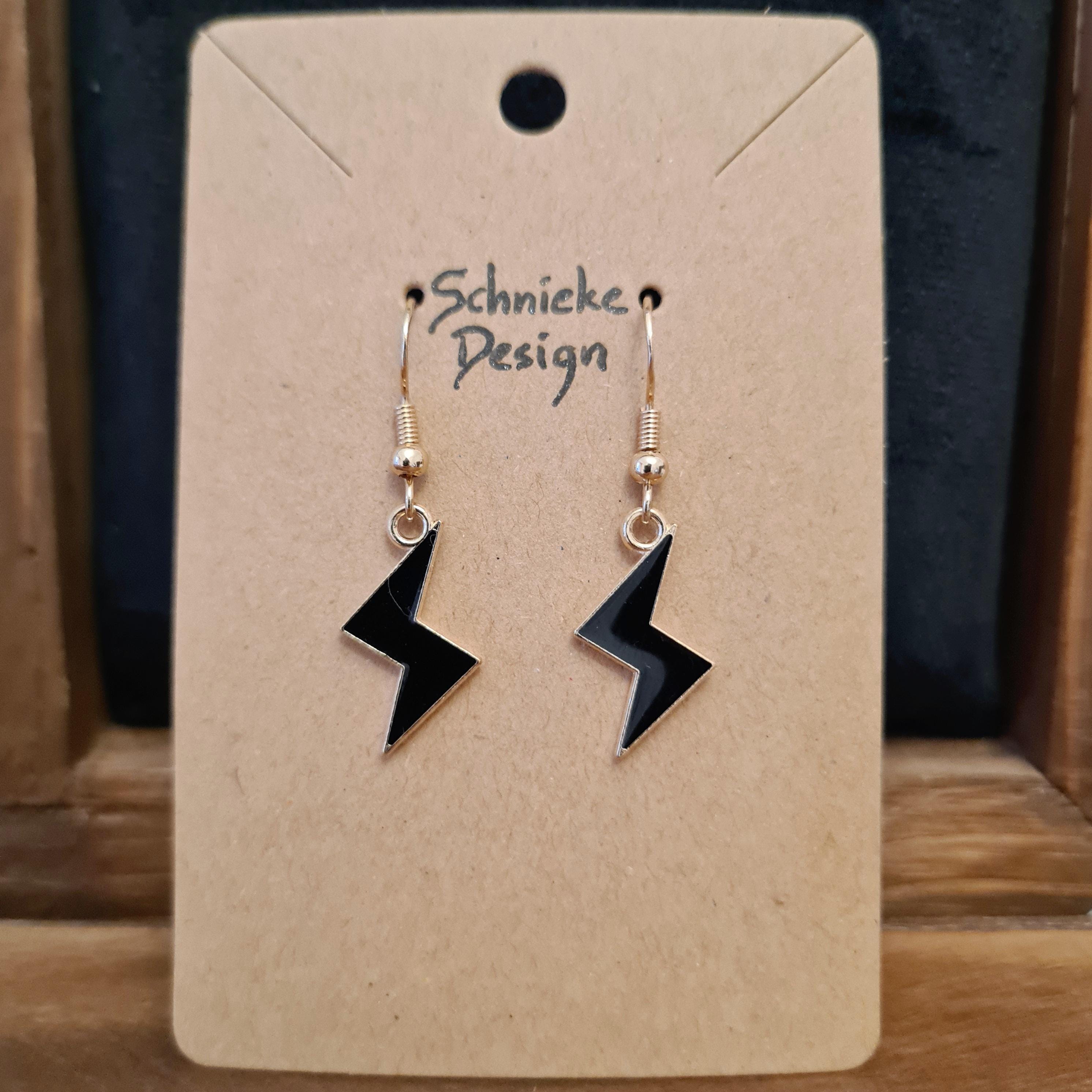 Lightning bolt earrings made of enamel and copper in yellow, black or purple.