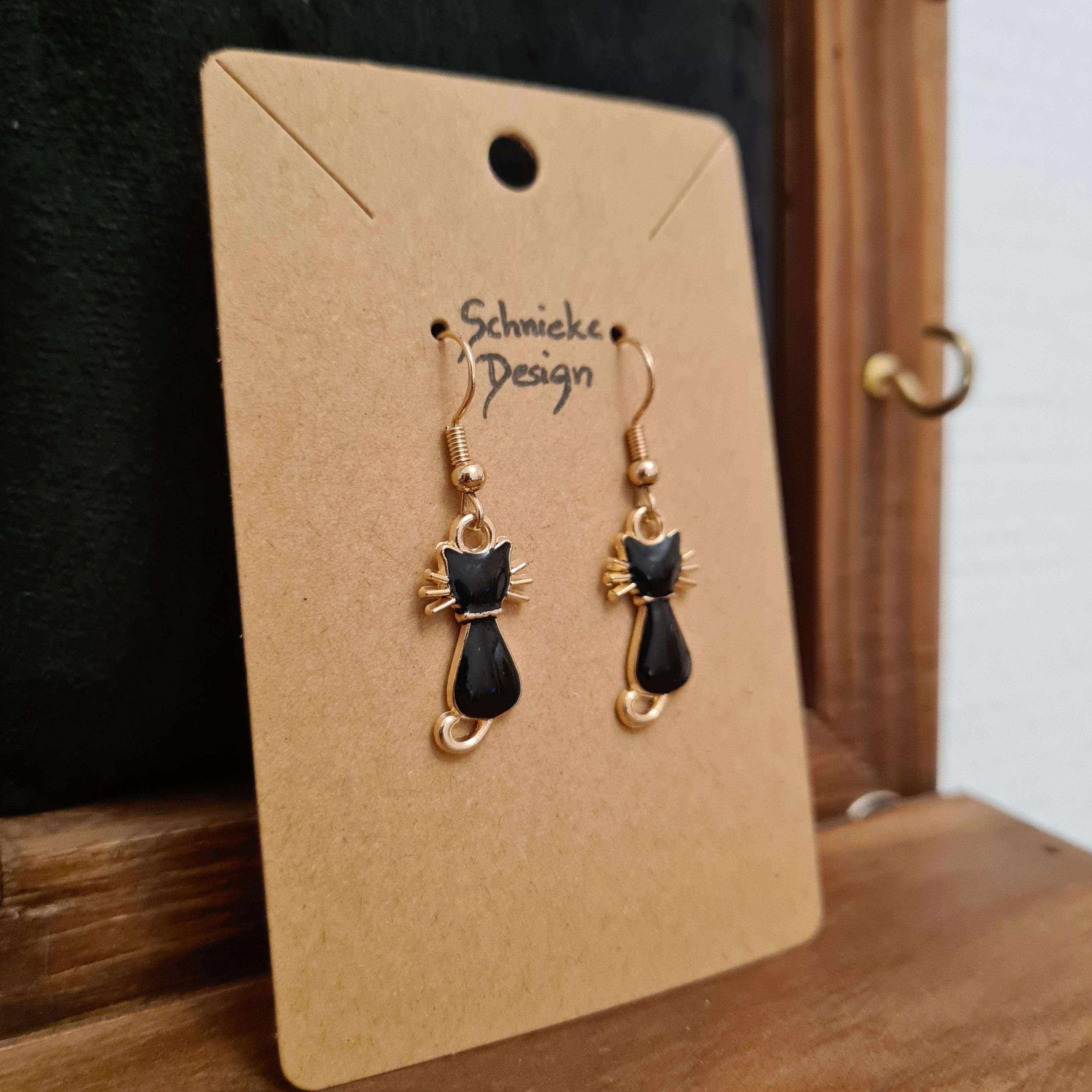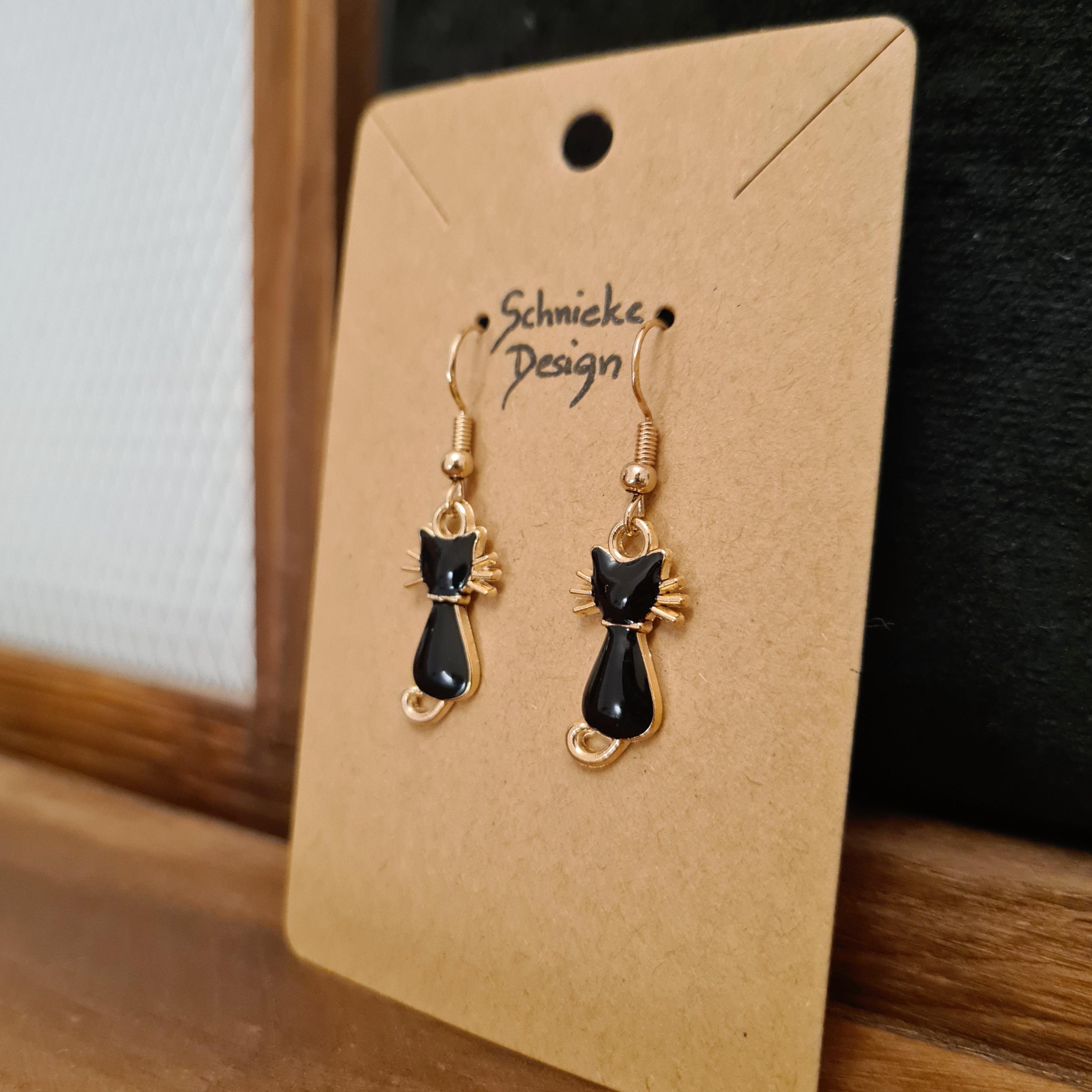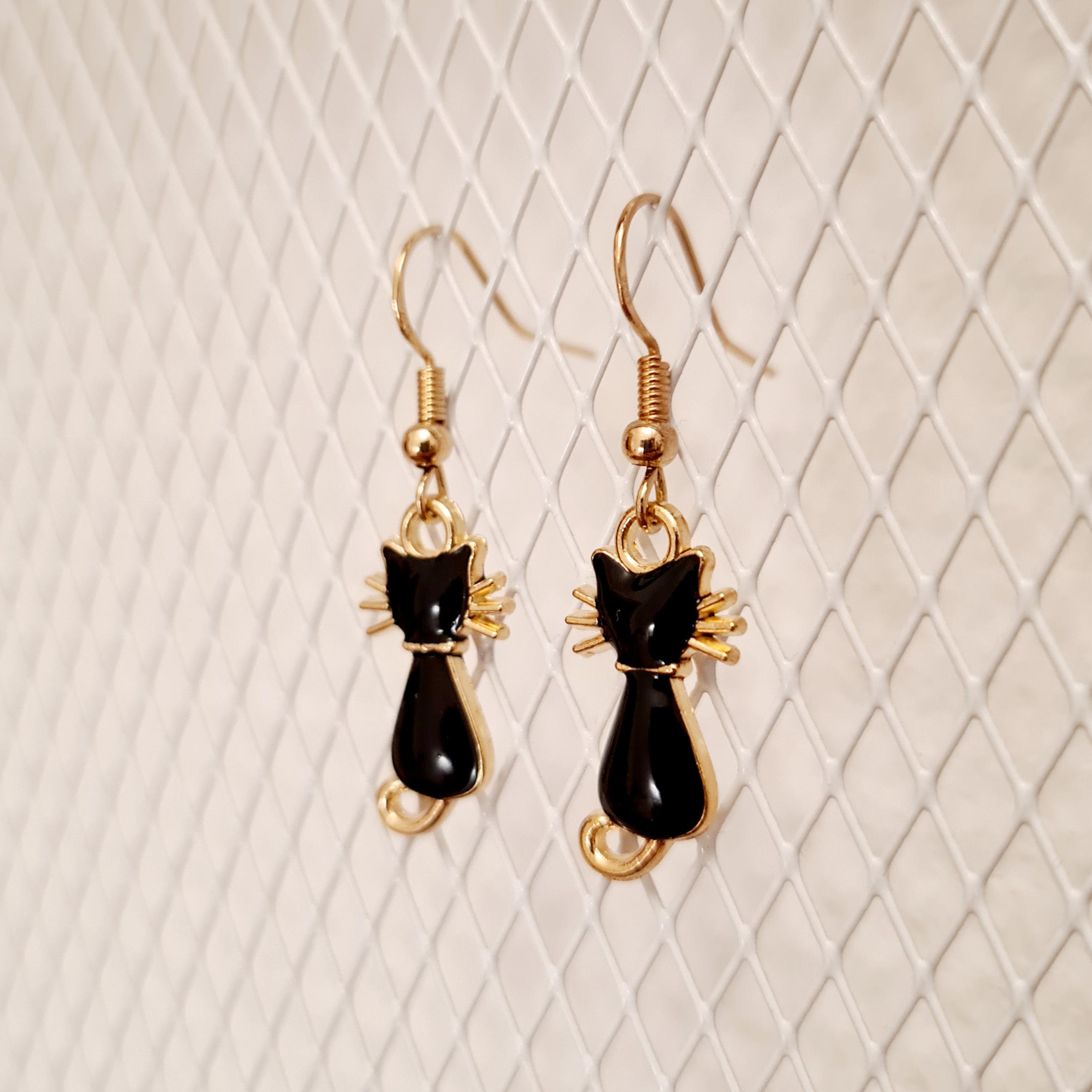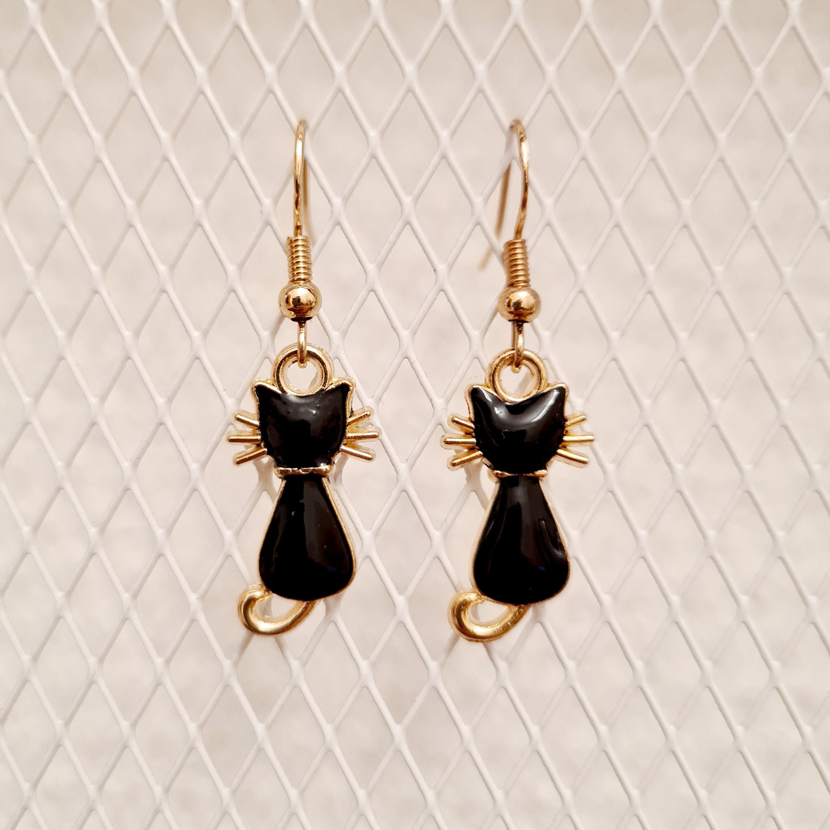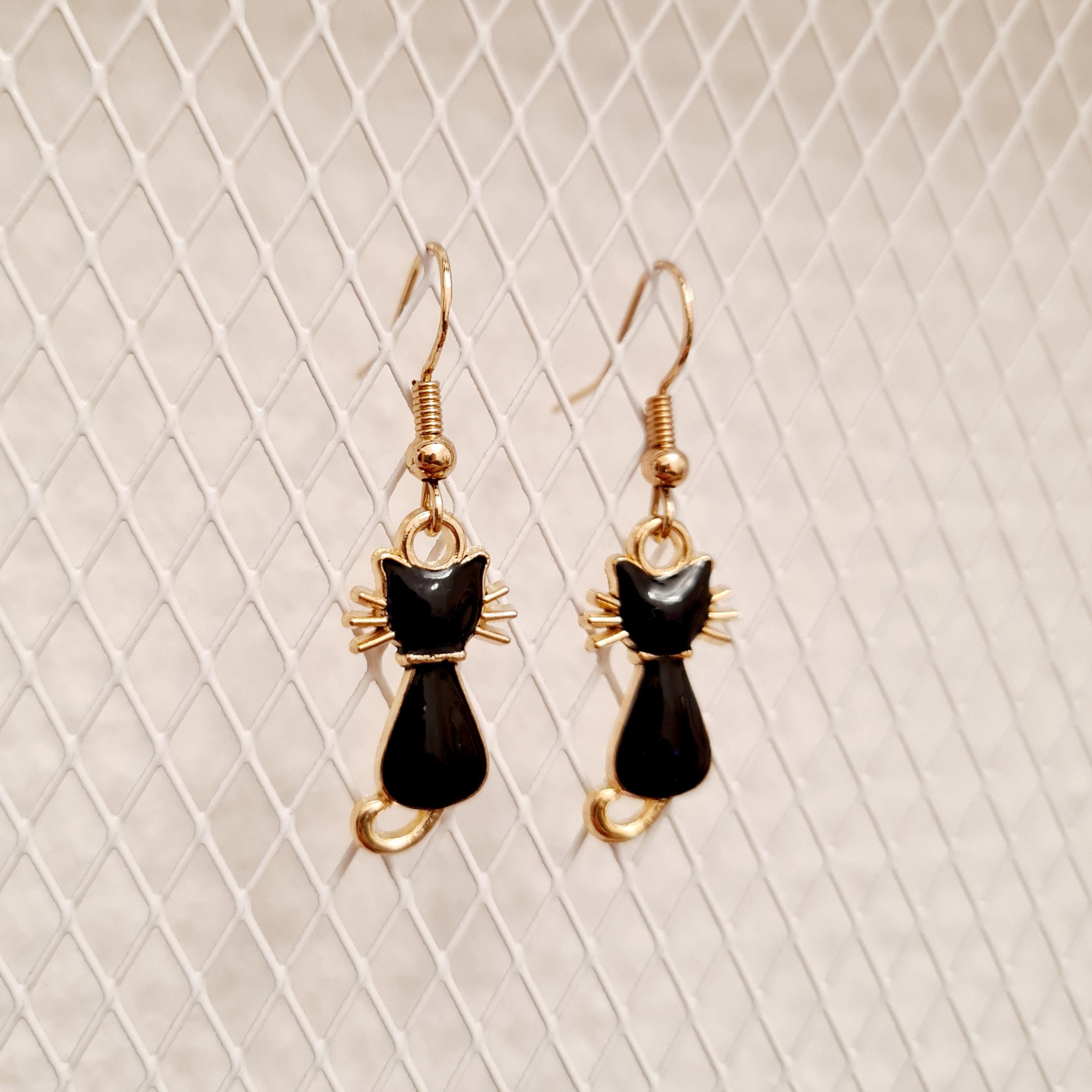 Cat earrings made of enamel and copper.
