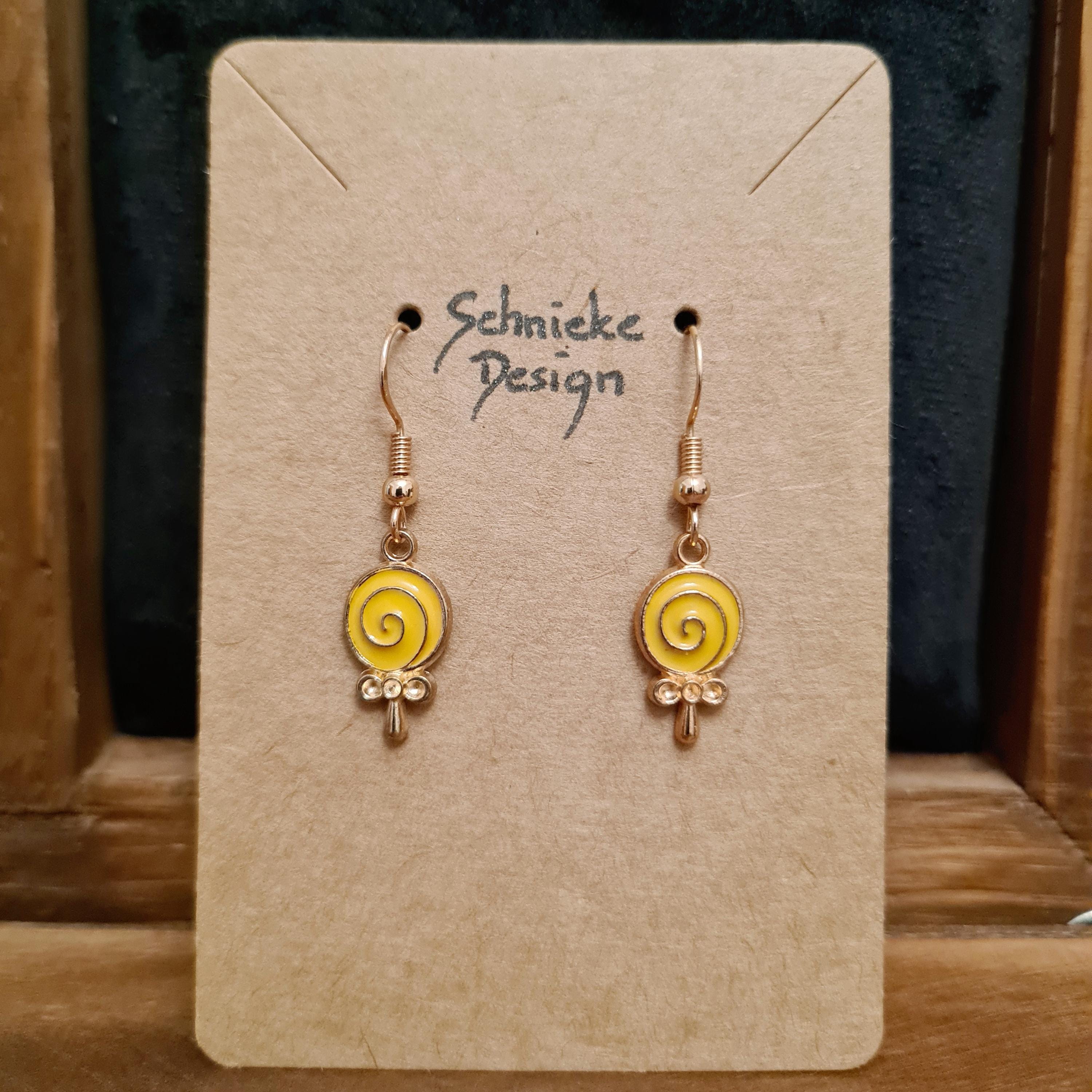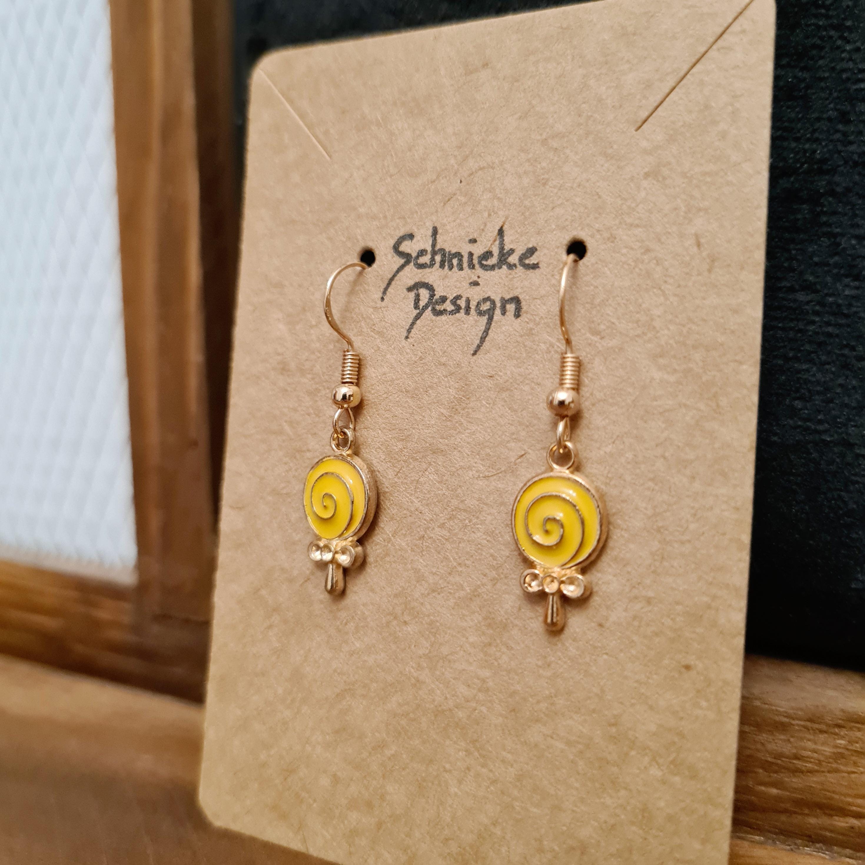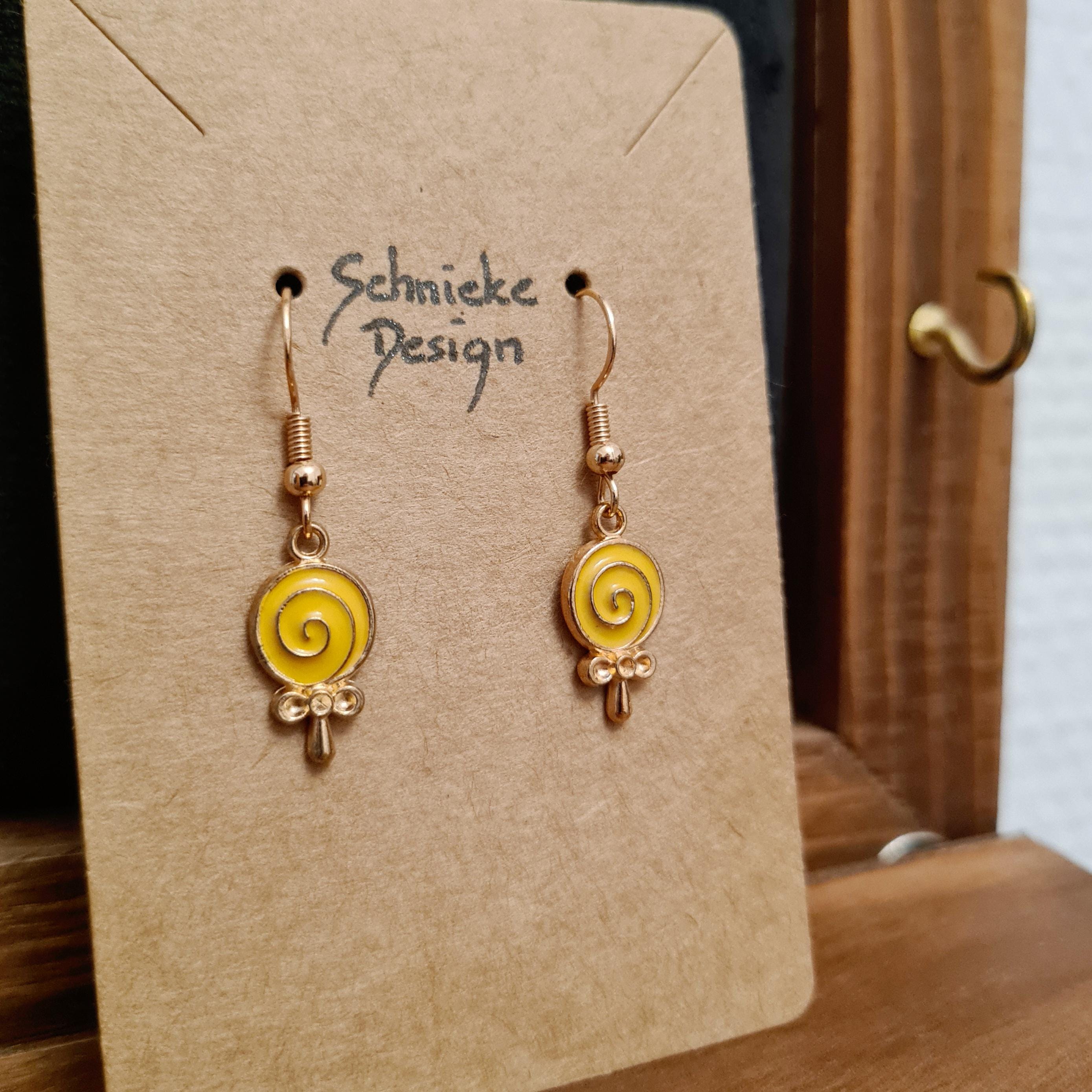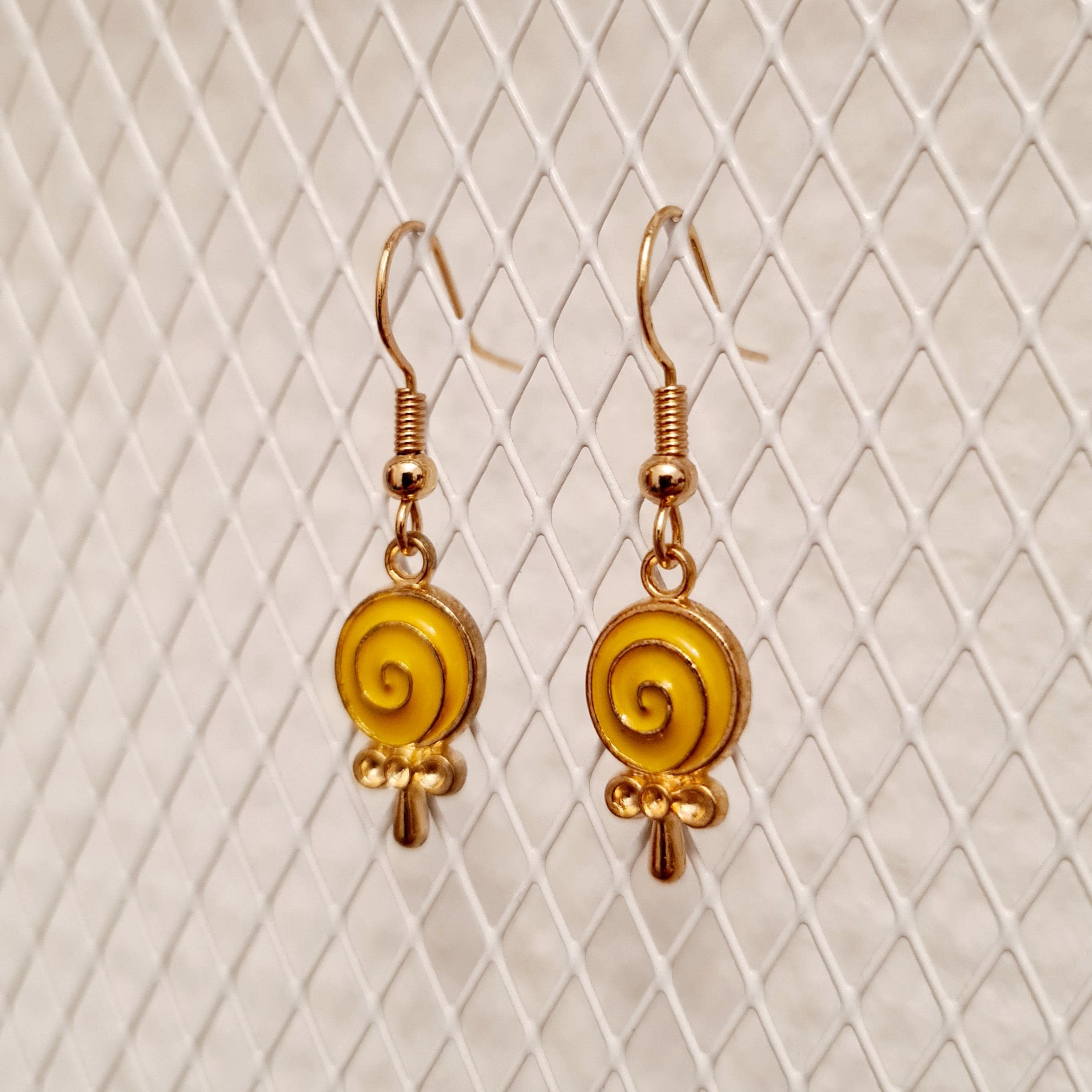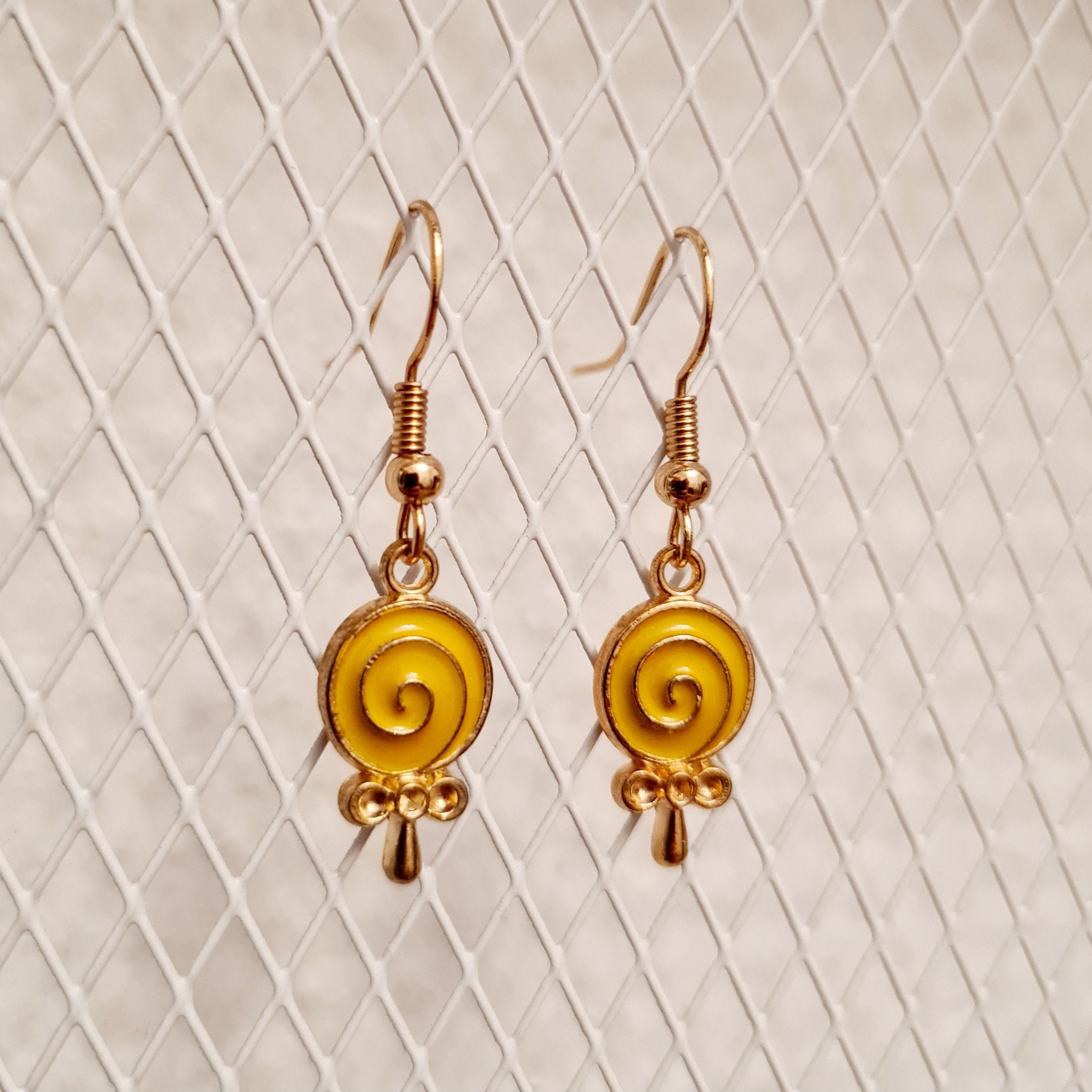 Lollipop earrings with a bow, made of enamel and copper. Available in pink, blue, purple, or yellow.