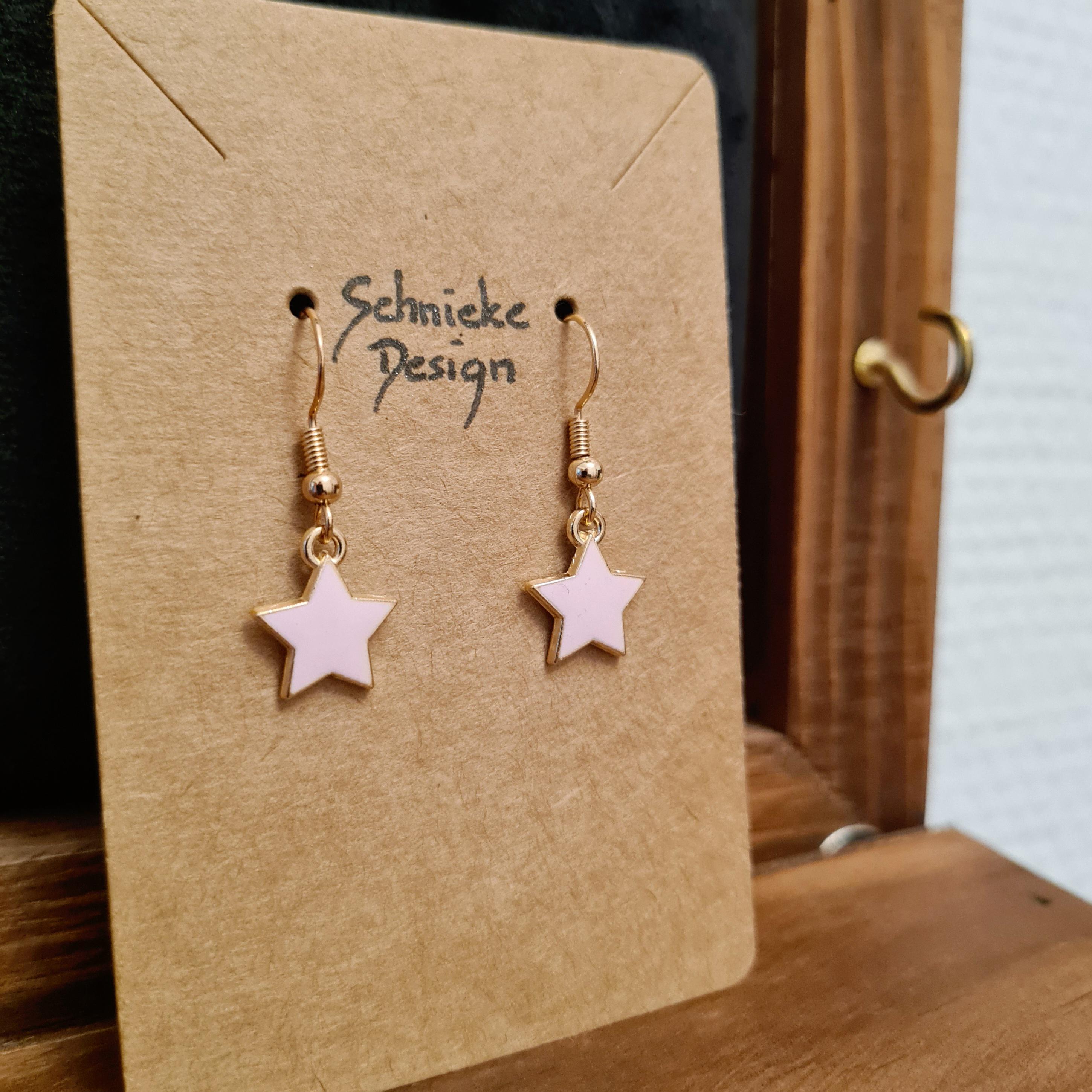 Star earrings made of enamel and copper in pink, blue, green or purple.