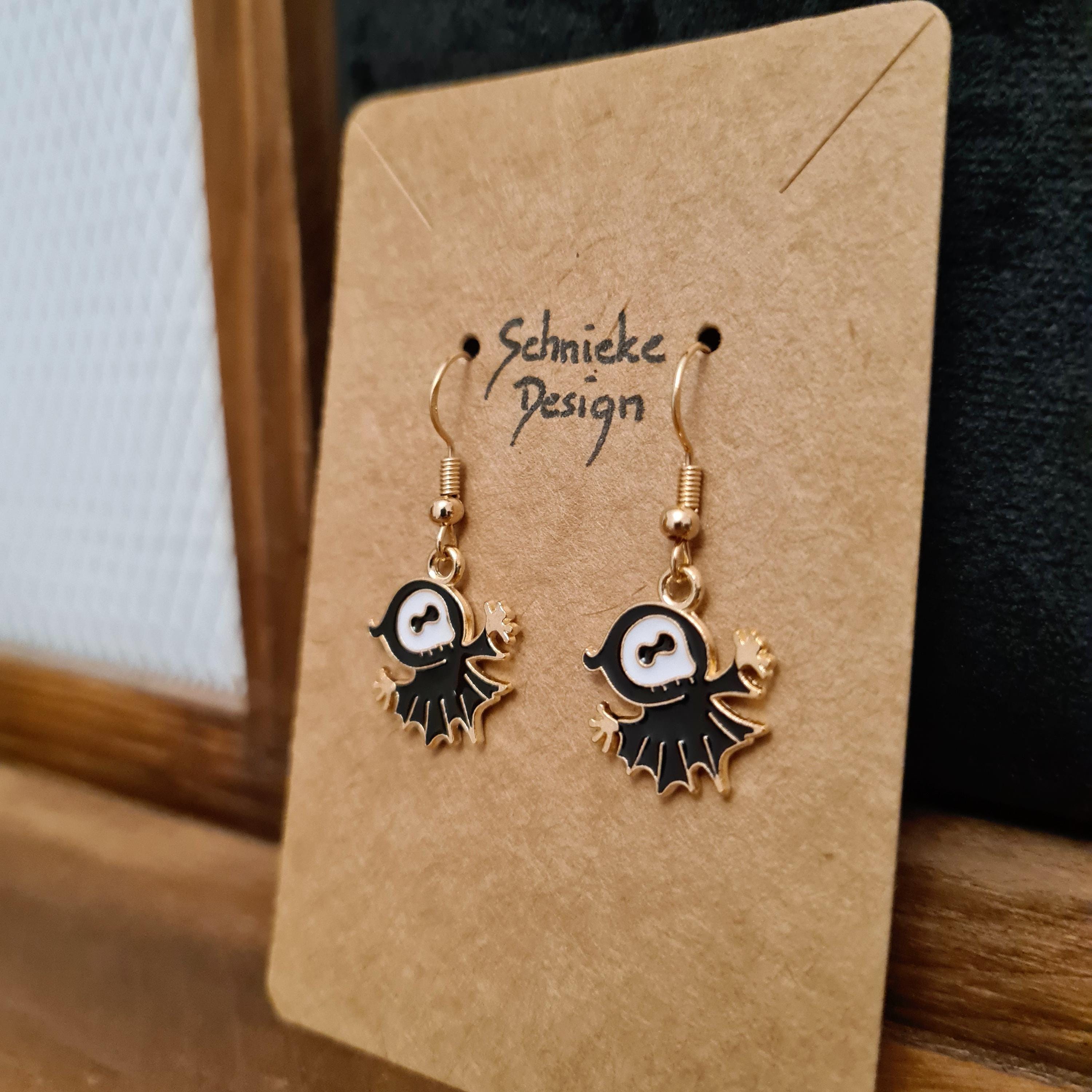 These ghost earrings in white, black and gold are a chic accessory for your Halloween costume!
