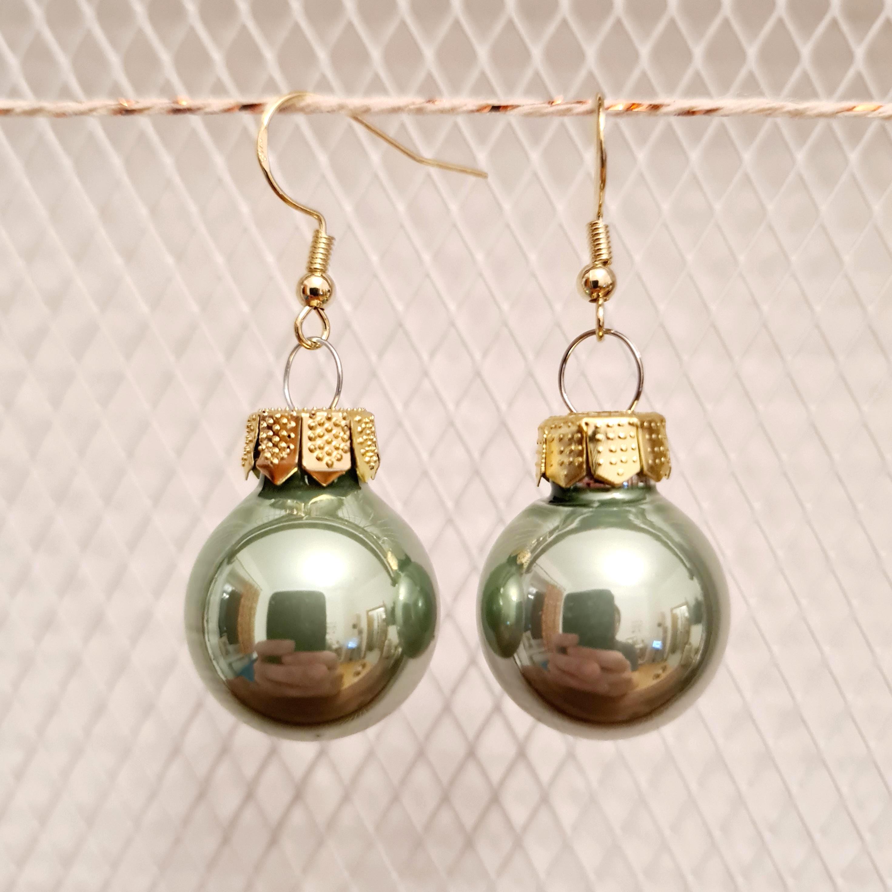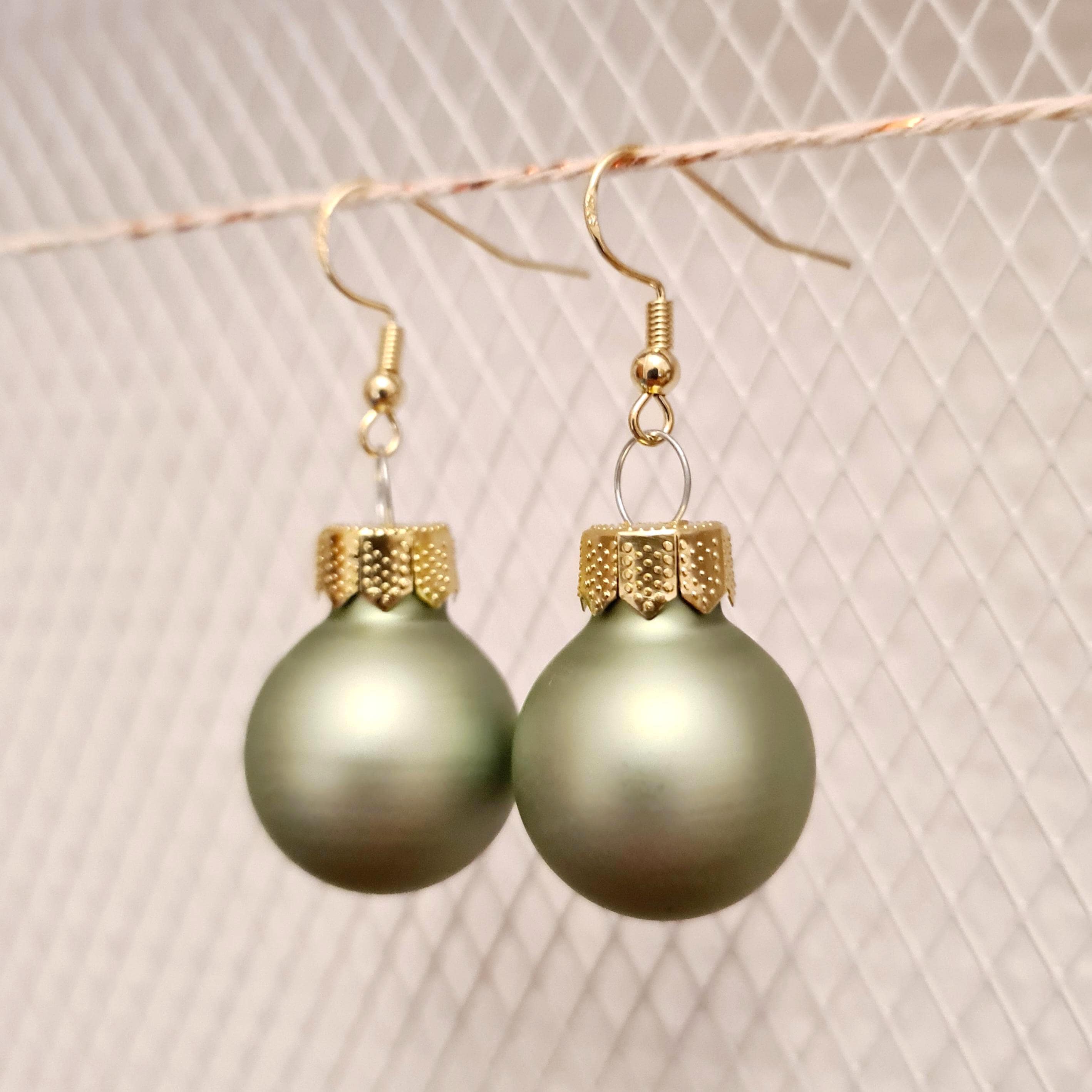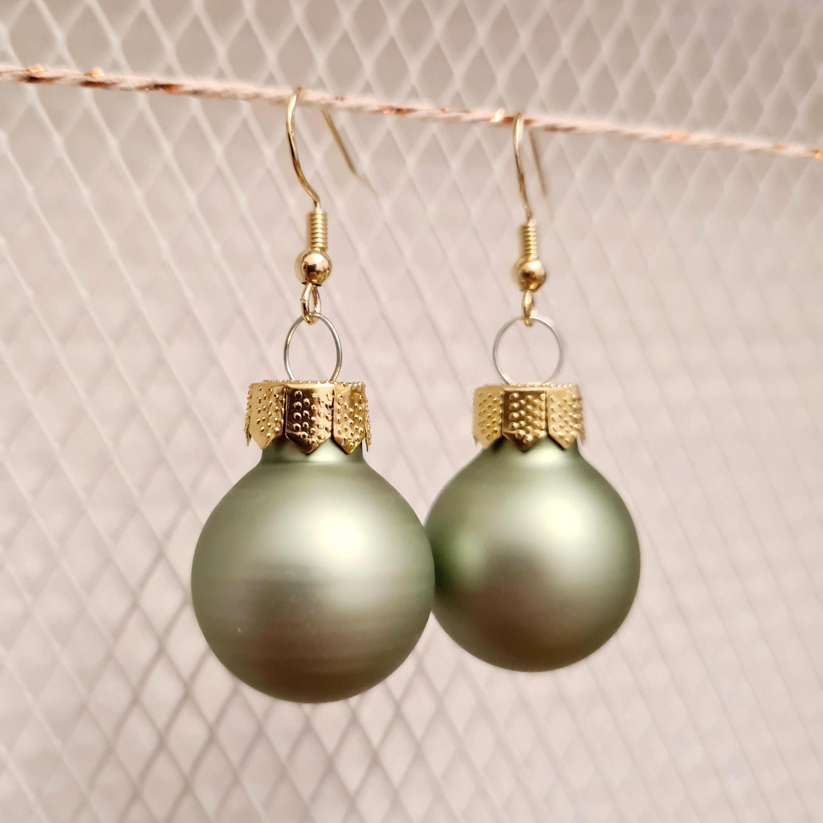 These earrings with sage green balls are a real eye-catcher, perfectly matching the Christmas decorations.