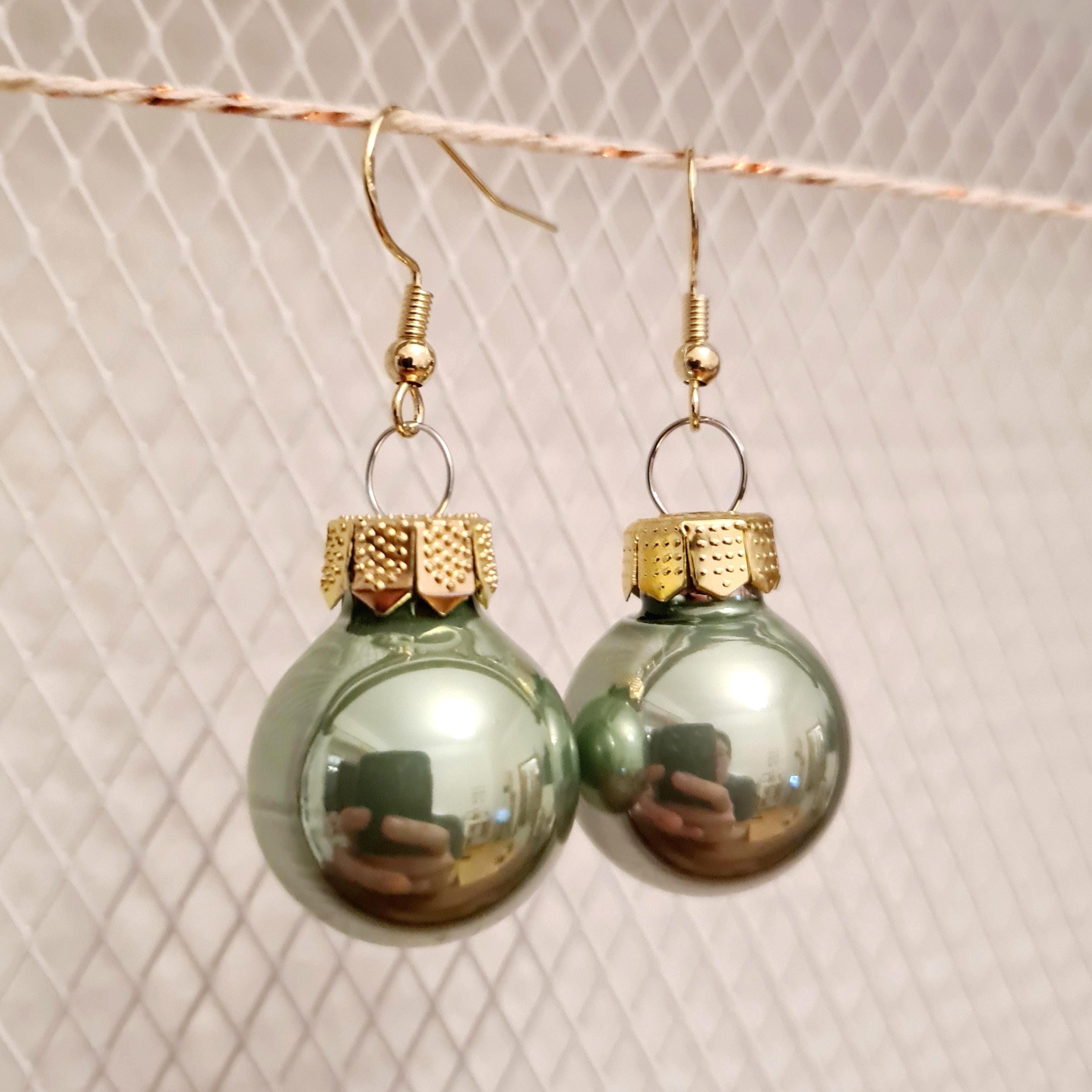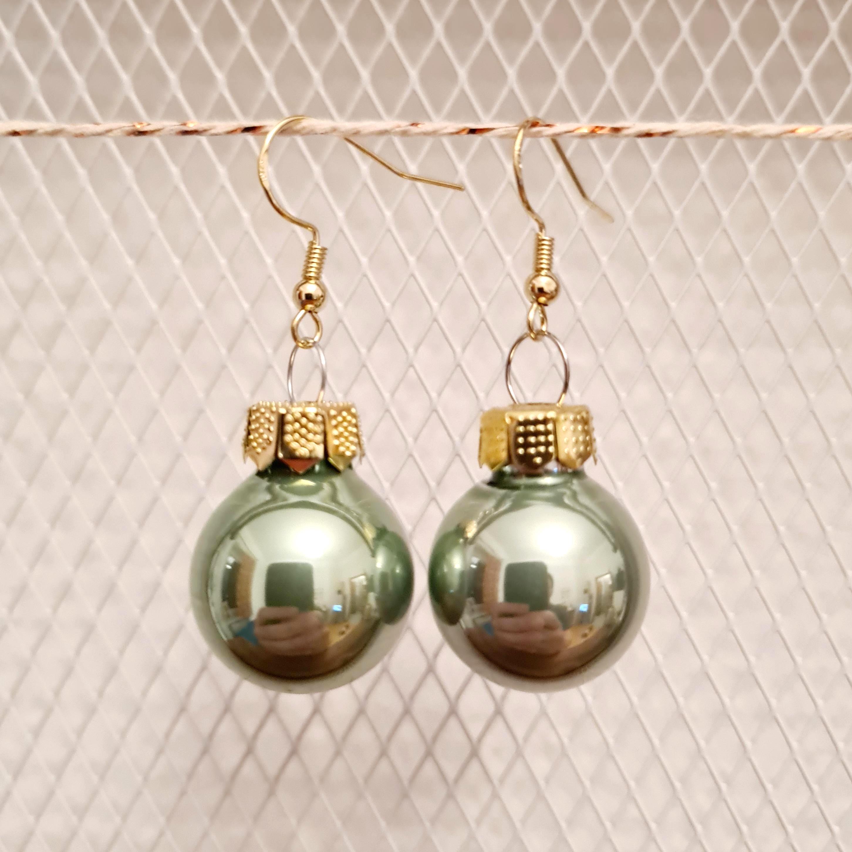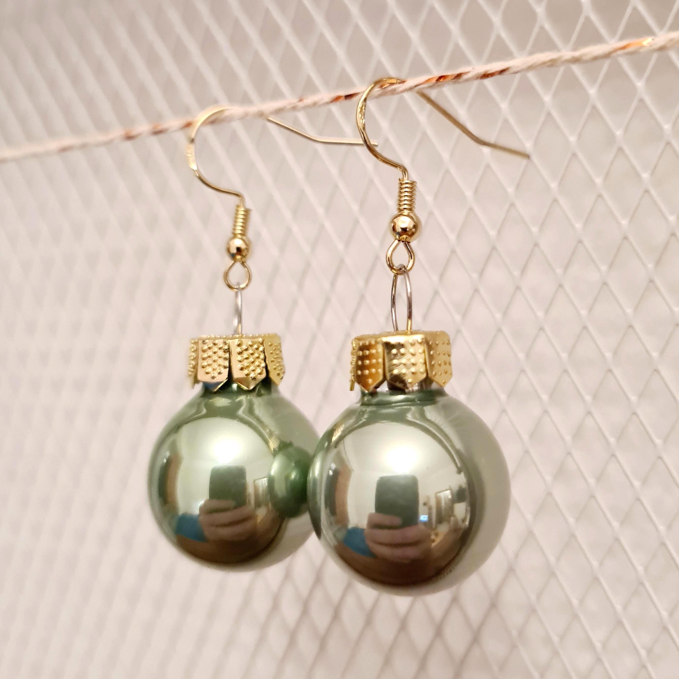 These earrings with sage green balls are a real eye-catcher, perfectly matching the Christmas decorations.