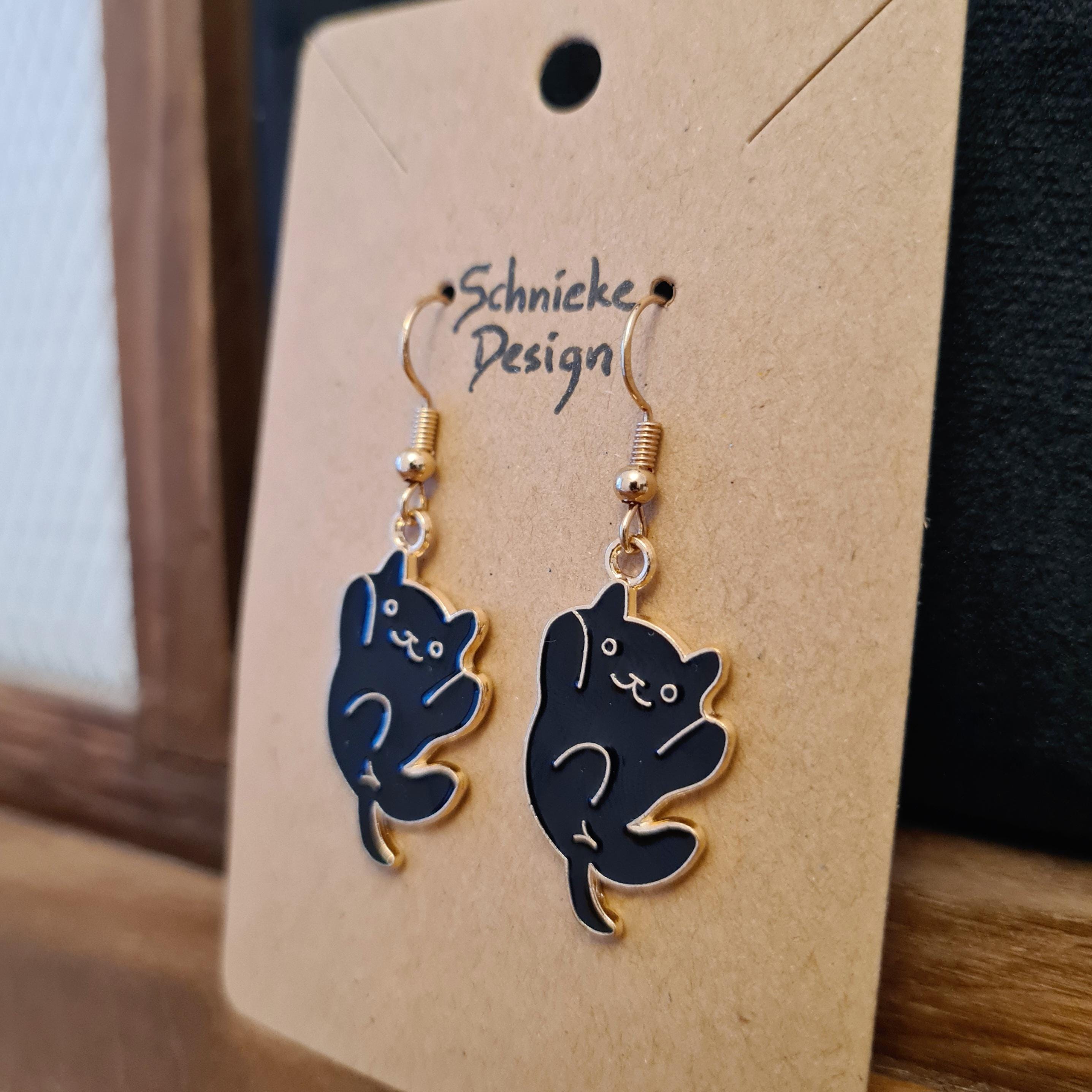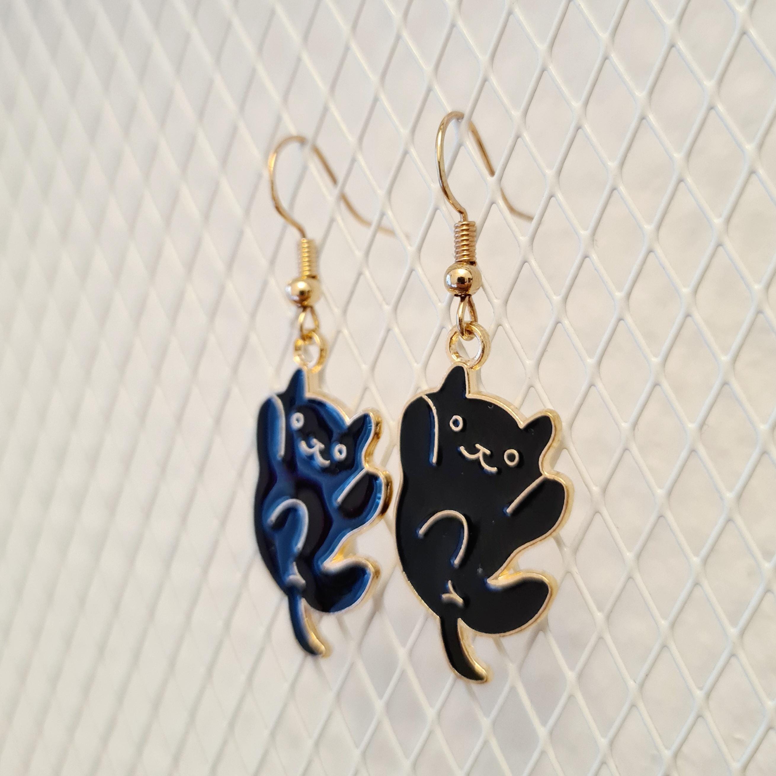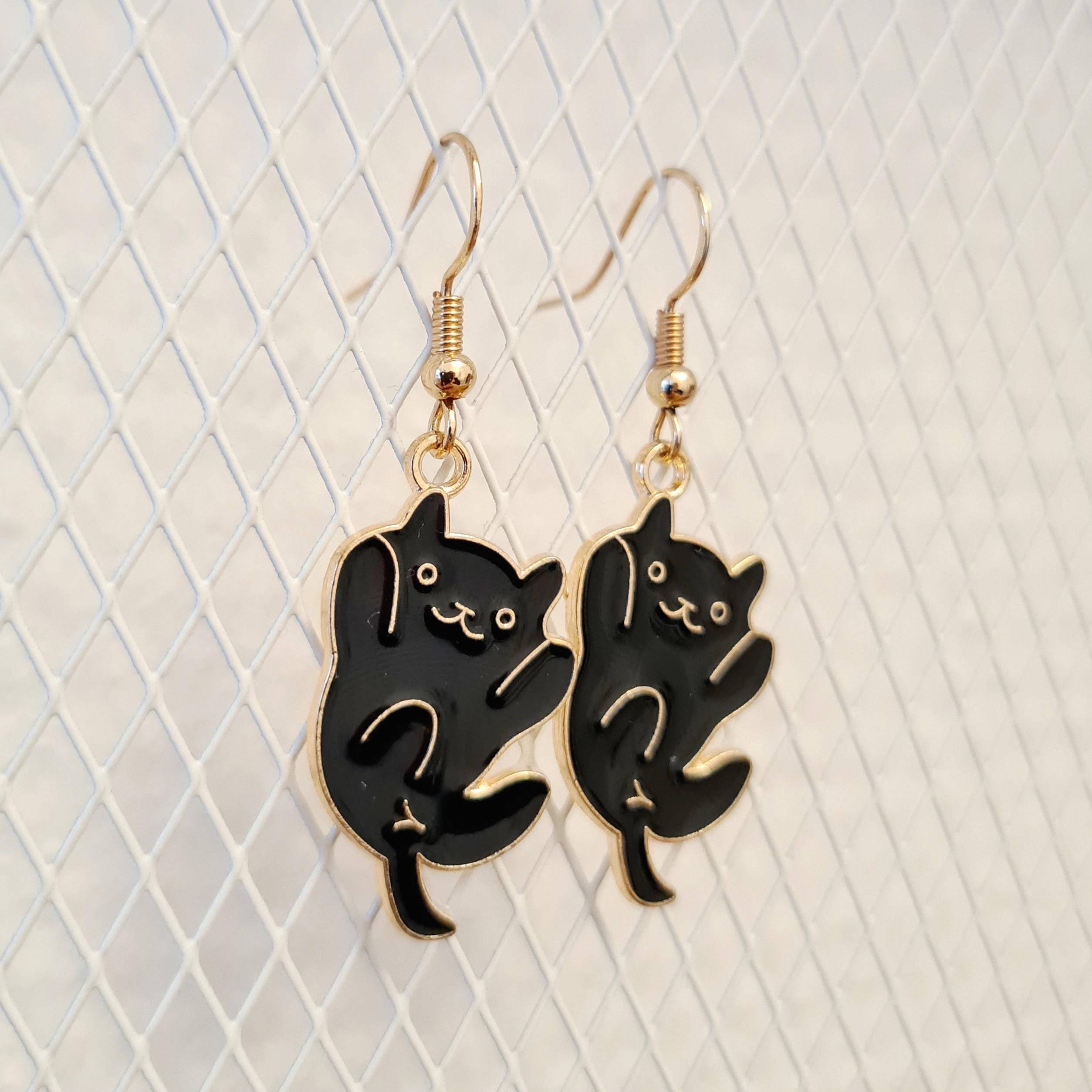 Enamel and copper cat earrings in gold and black. For cat lovers!