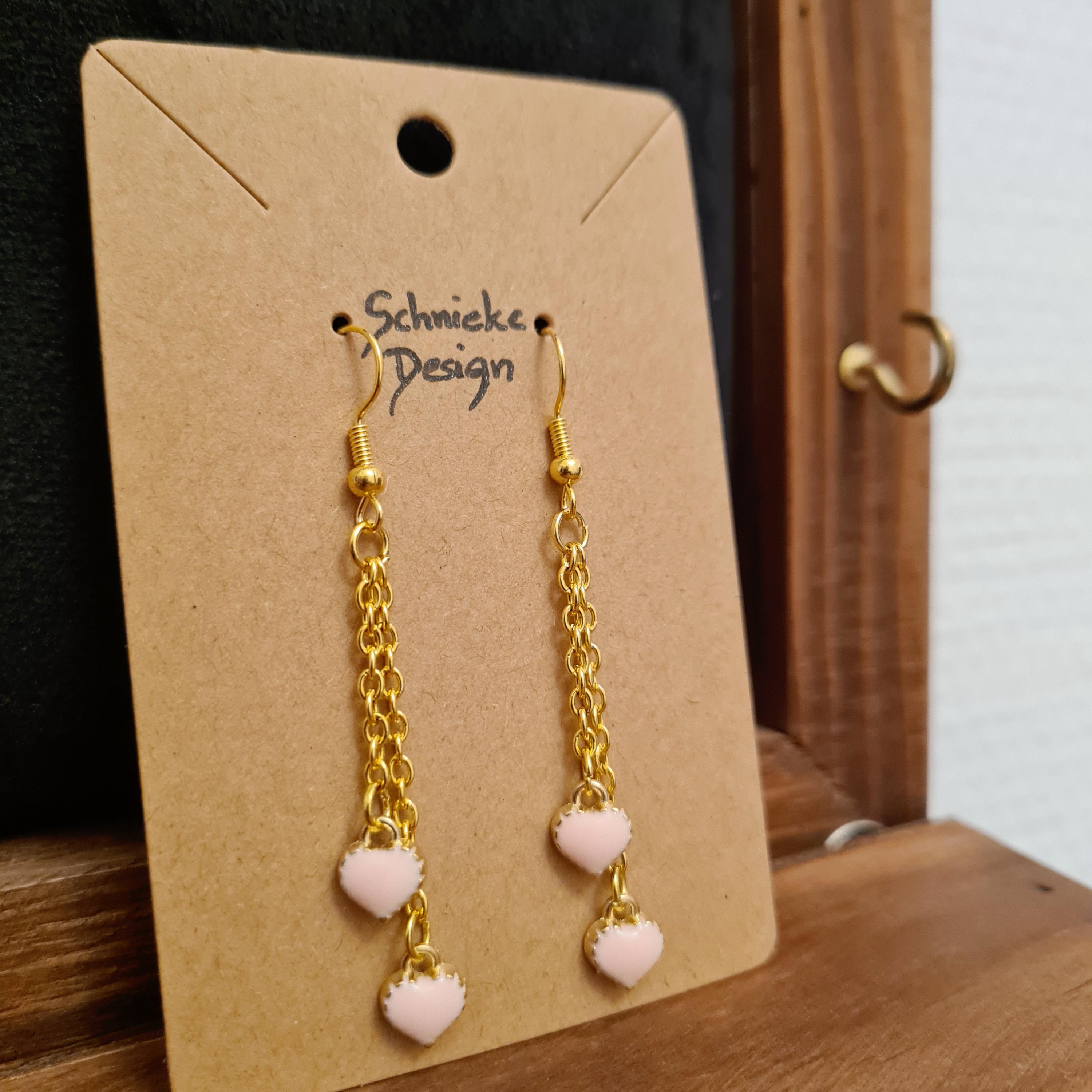 The video also shows the version with shorter chains. You can find it here: https://www.etsy.com/de/listing/4437209004/ohrhanger-mit-kleinen-herzen-an-goldenen